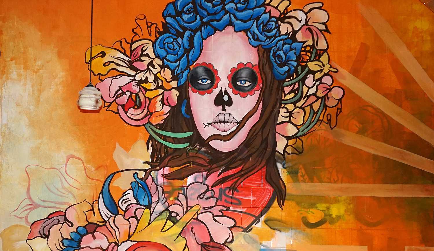 Mexikói étteremben készült falfestmények. Reklámfestés. Budapest, Tereza (Nagymező utca 3.), 2018