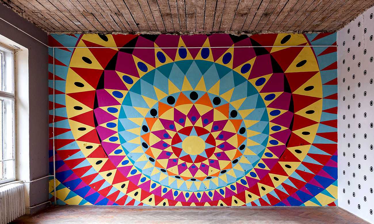 A 12 fal - Építészet és kortárs ornamentika. Épiteszek által tervezett grafikák kerültek felfestésre, egy régi iskola falfelületeire. Design-festés. Veszprém,…
