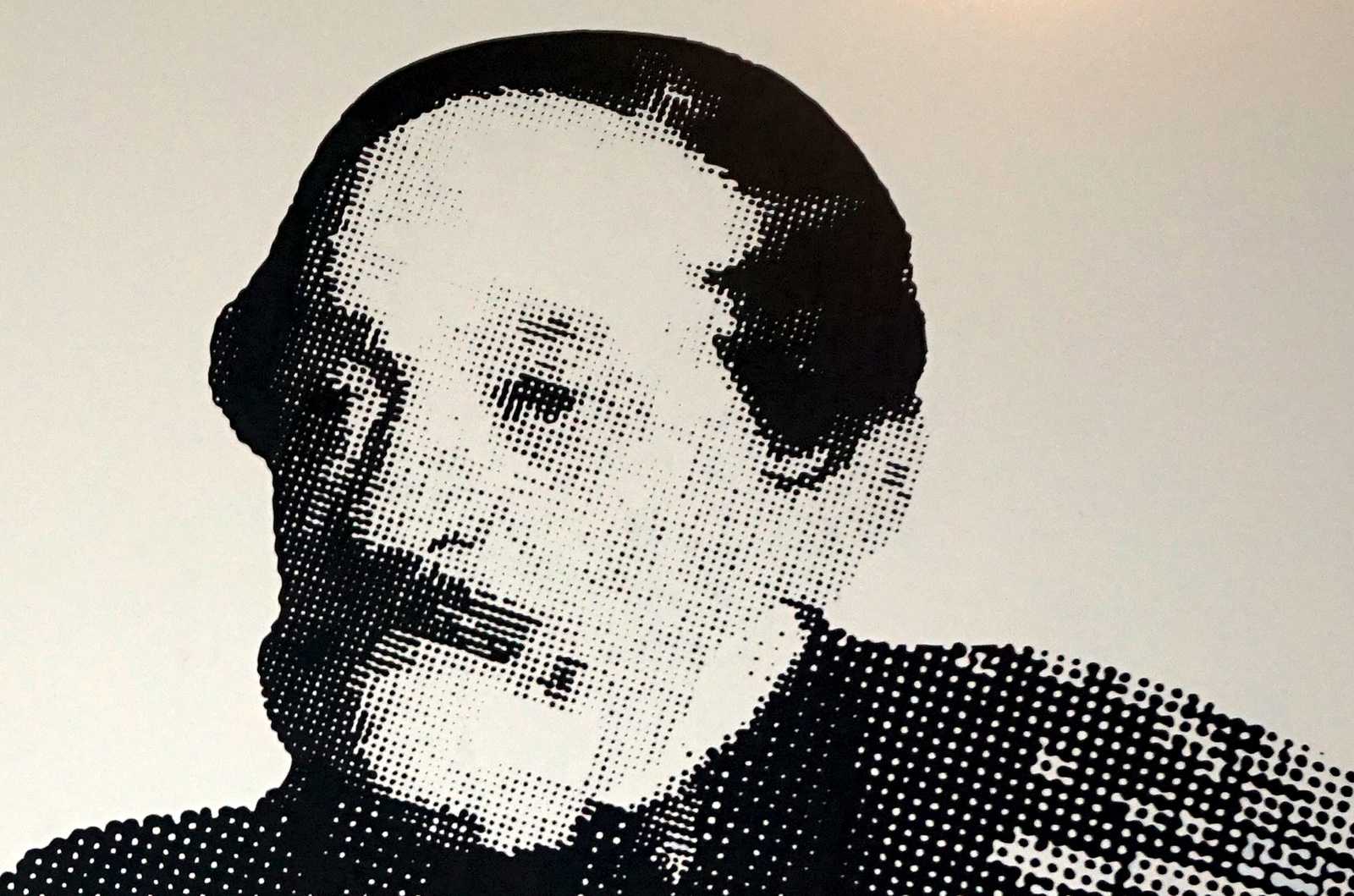Dreher Antalt ábrázoló falfestmény, amely apró pontok ezreiből épül fel. Dreher Sörgyár, Budapest, 2019