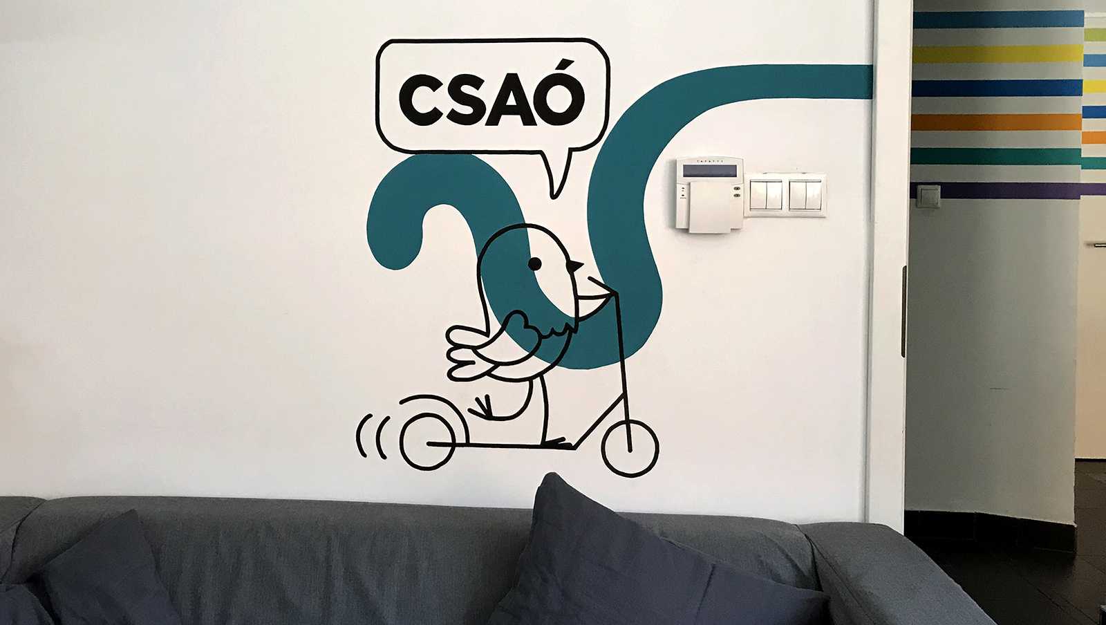 A GY.Á.R. reklámügynökség stúdiójába készült nagy méretű, beltéri falfestmények. Budapest - 2011