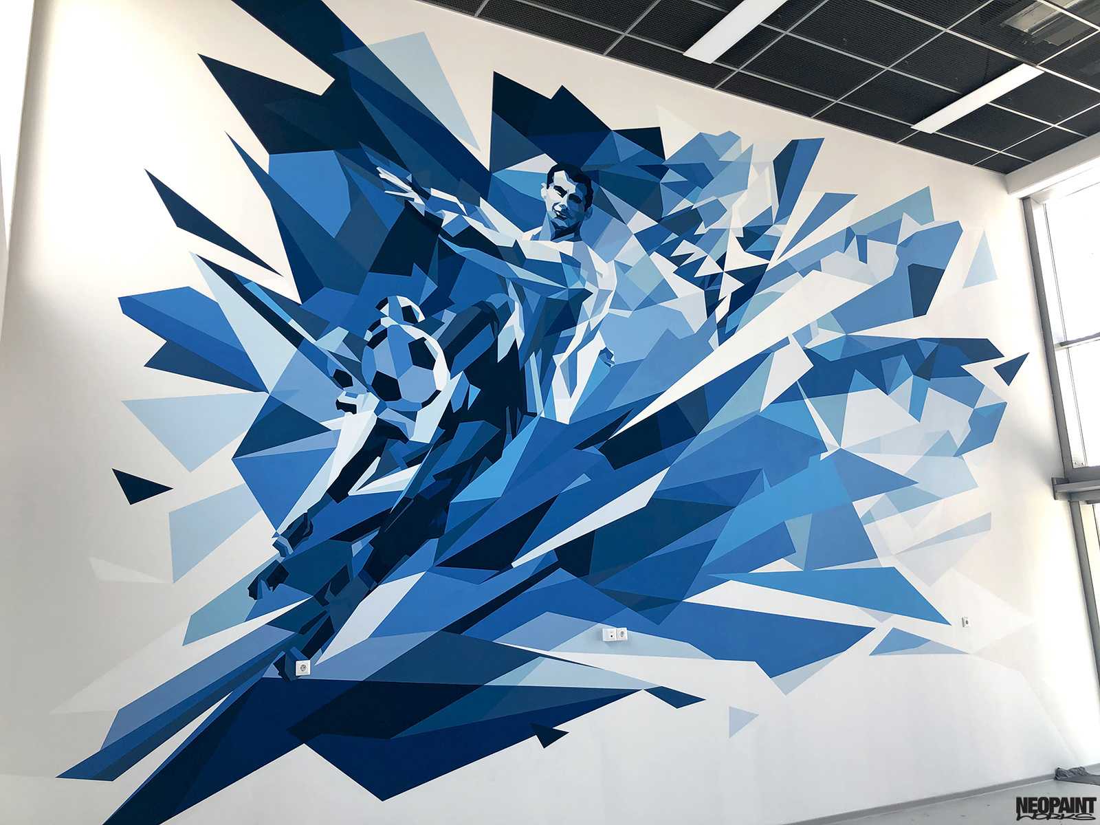 Sport témájú falfestmények a Decathlon irodájában. A fotorealsztikus festmények, adott fotók grafikai átdolgozása után kerültek felfestésre.Budapest, 2015