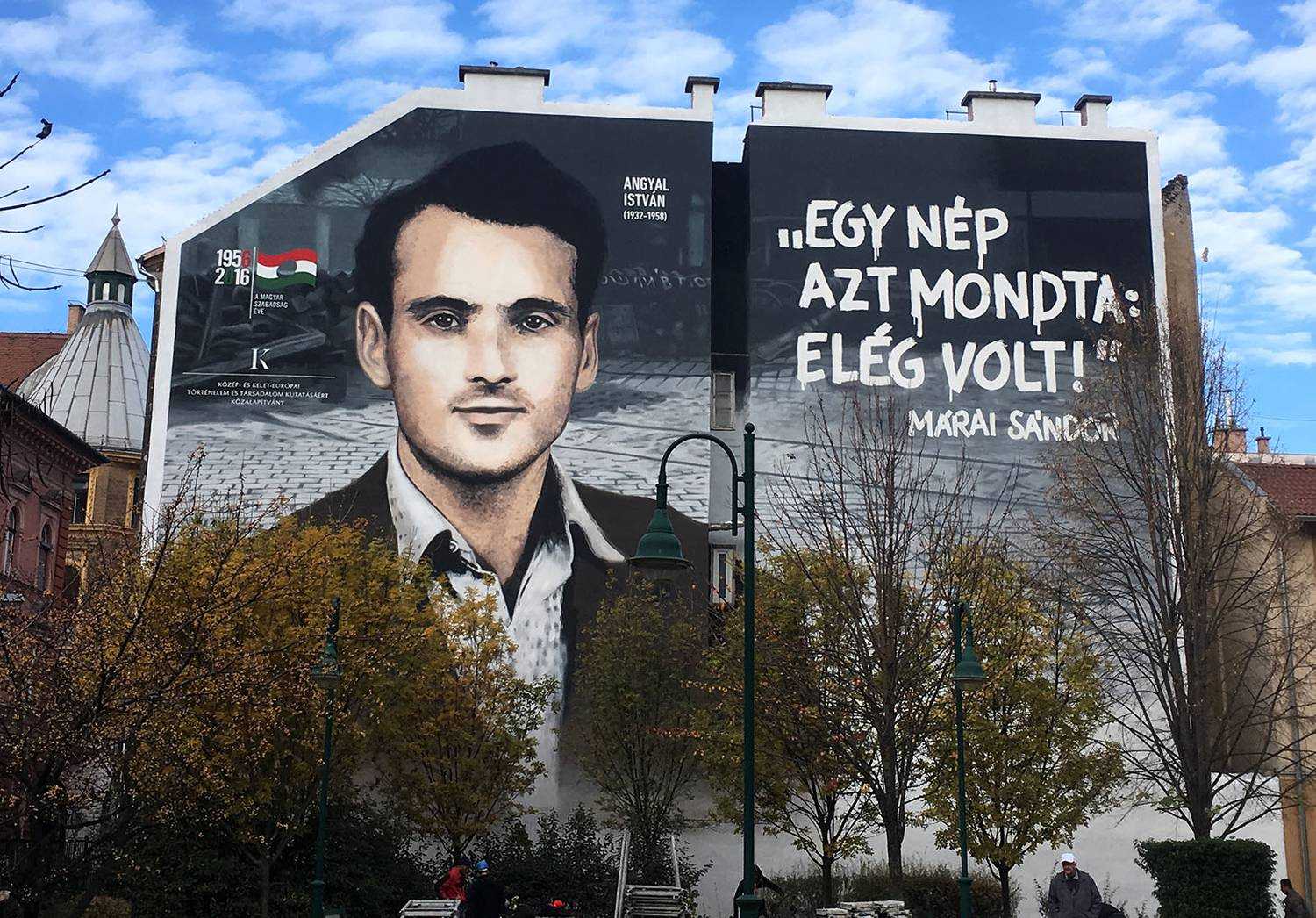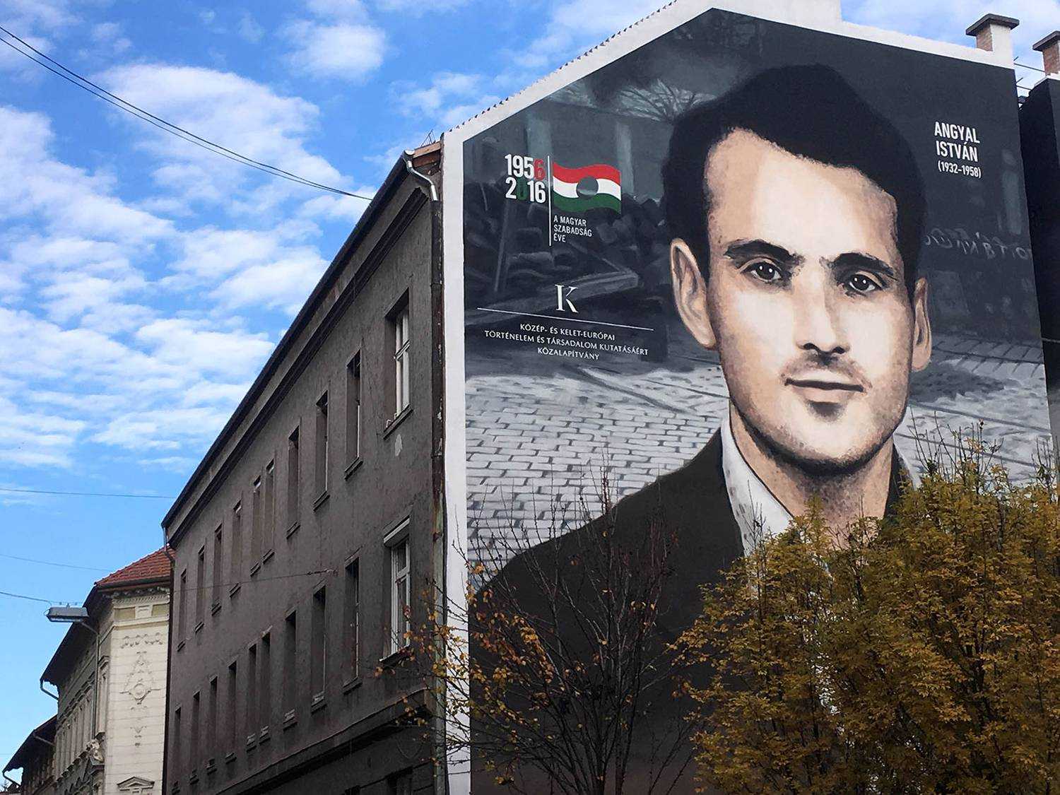 Az 1956-os Forradalom és Szabadságharc 60. évfordulójára több tűzfalfestmény készült Budapesten és Egerben. Ezek egyike Angyal István portréképe.
