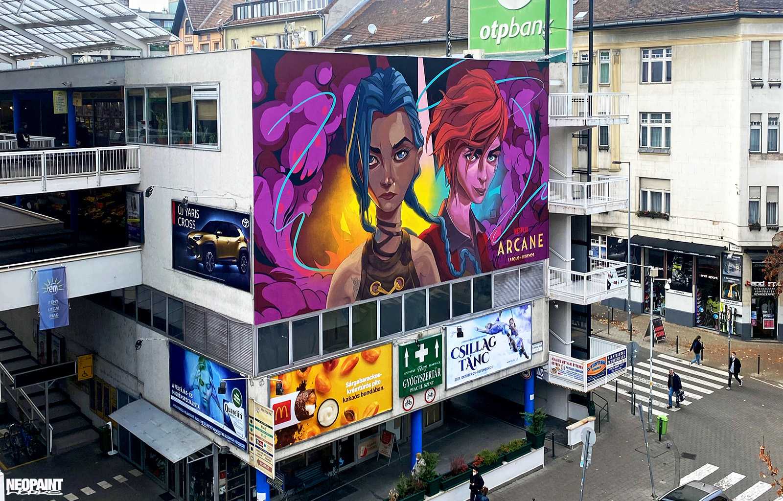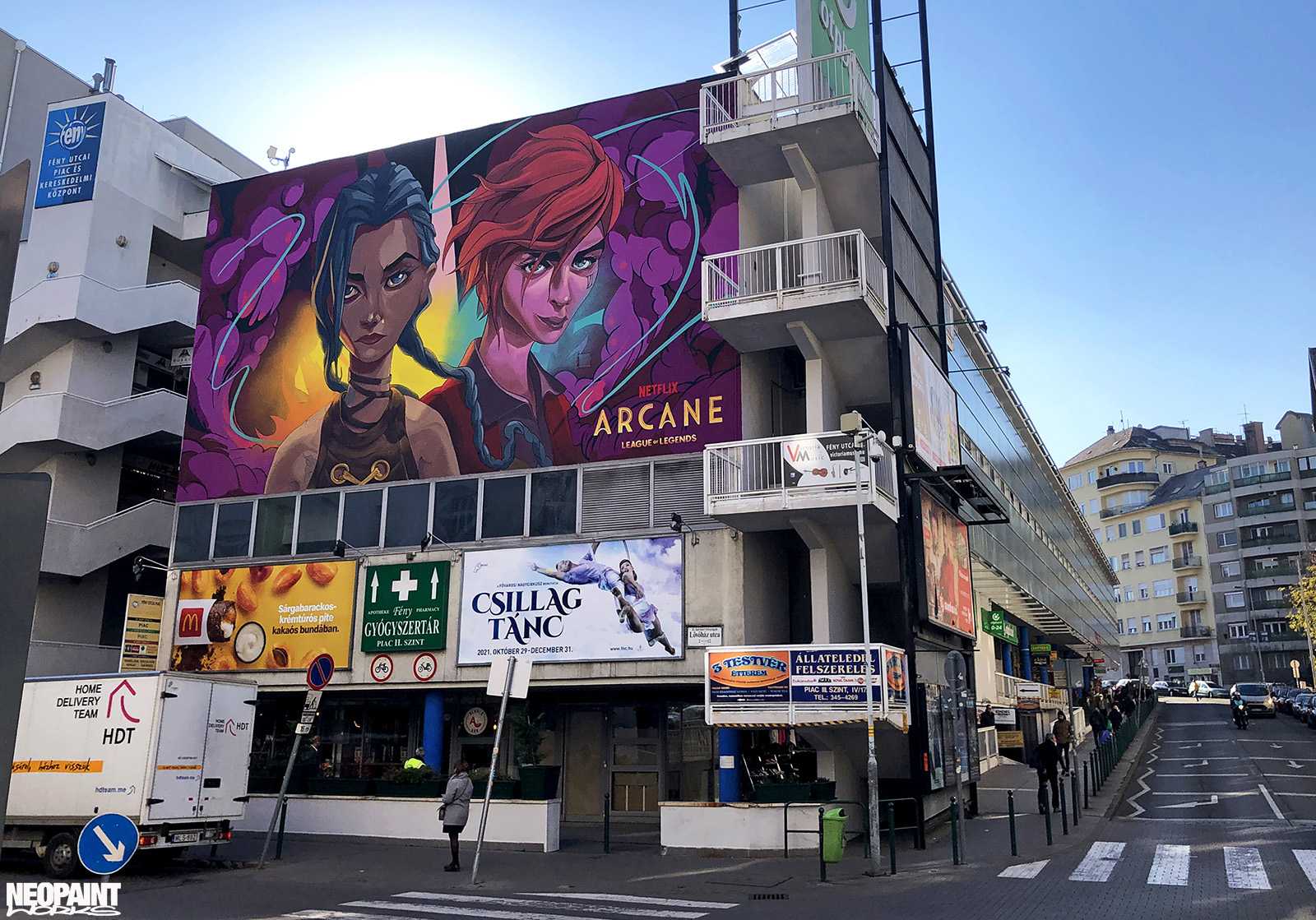 A Netflix egy új, animációs filmsorozatának promotálására készült reklámfestés a Fény utcai piac (Mammut) épületének homlokzatára. Az Arcane – t hirdető festmény öt nap alatt készült el és egy hónapot lesz látható.