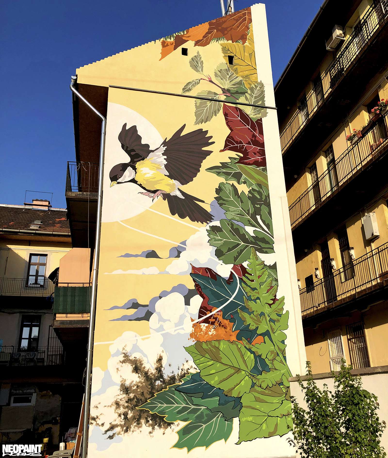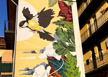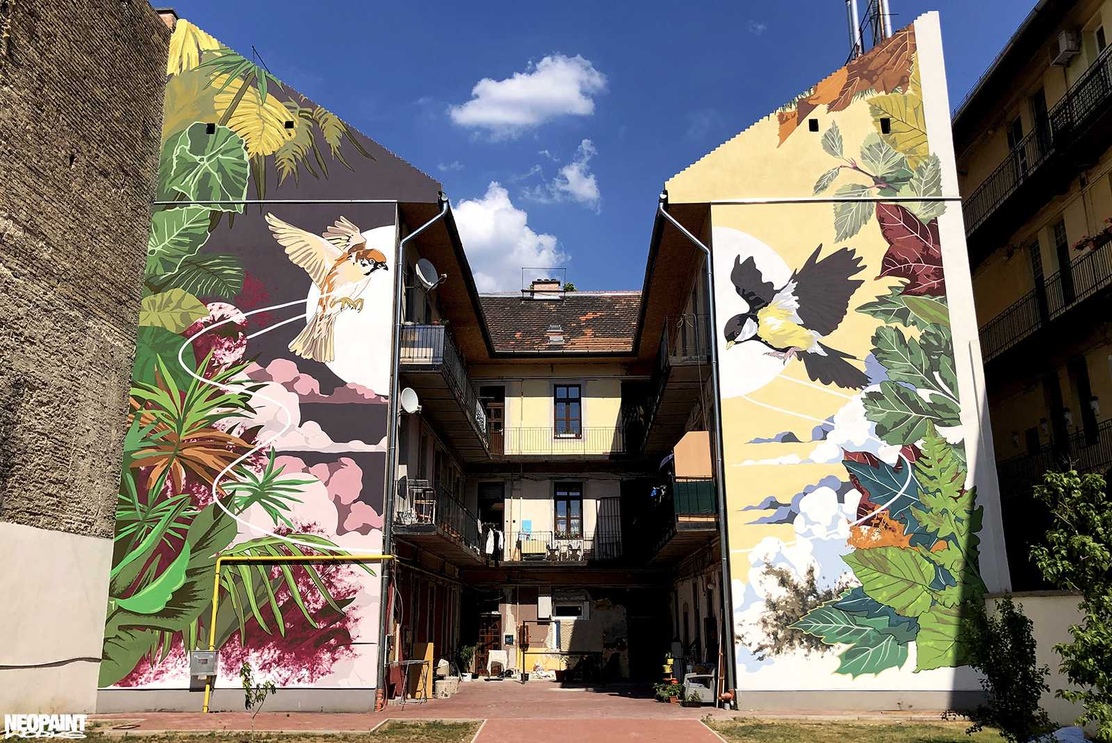 A Józsefvárosi Önkormányzat felkérésére készült tűzfalfestményünk, a VIII.kerületi Illés utcában. Az illusztrációt Brunszkó ‘Nikon’ László készítette.