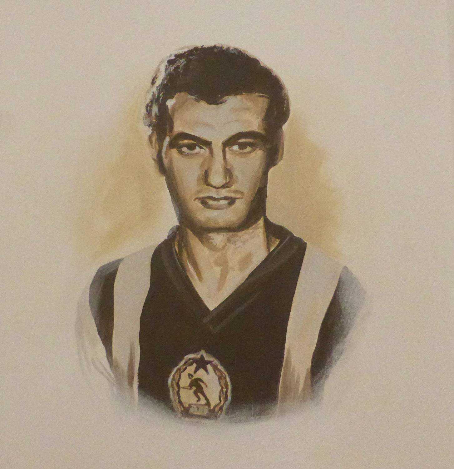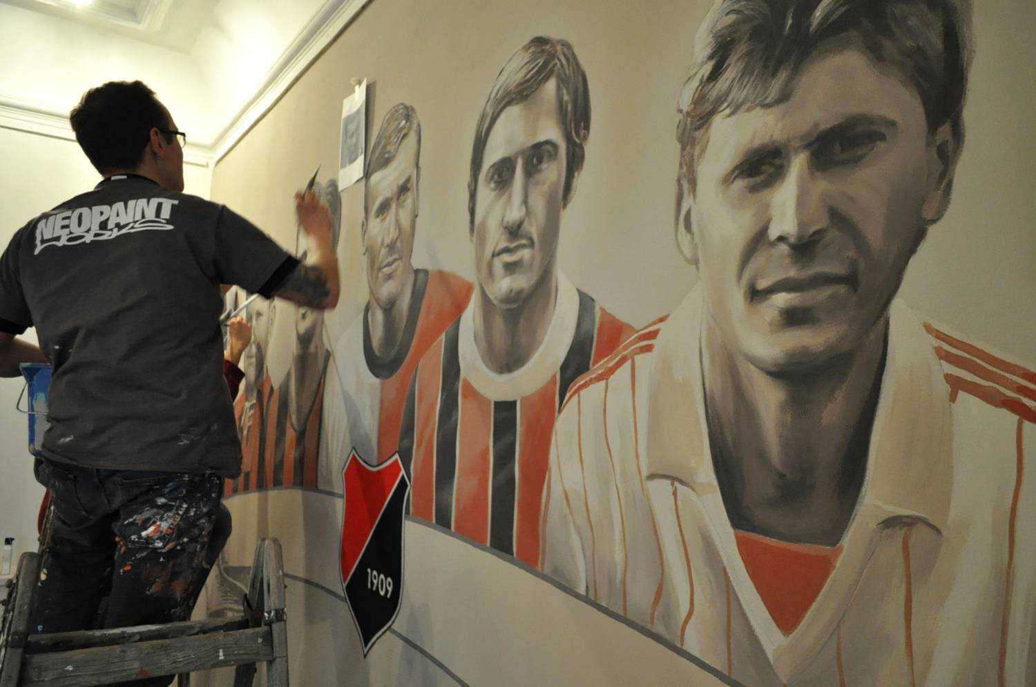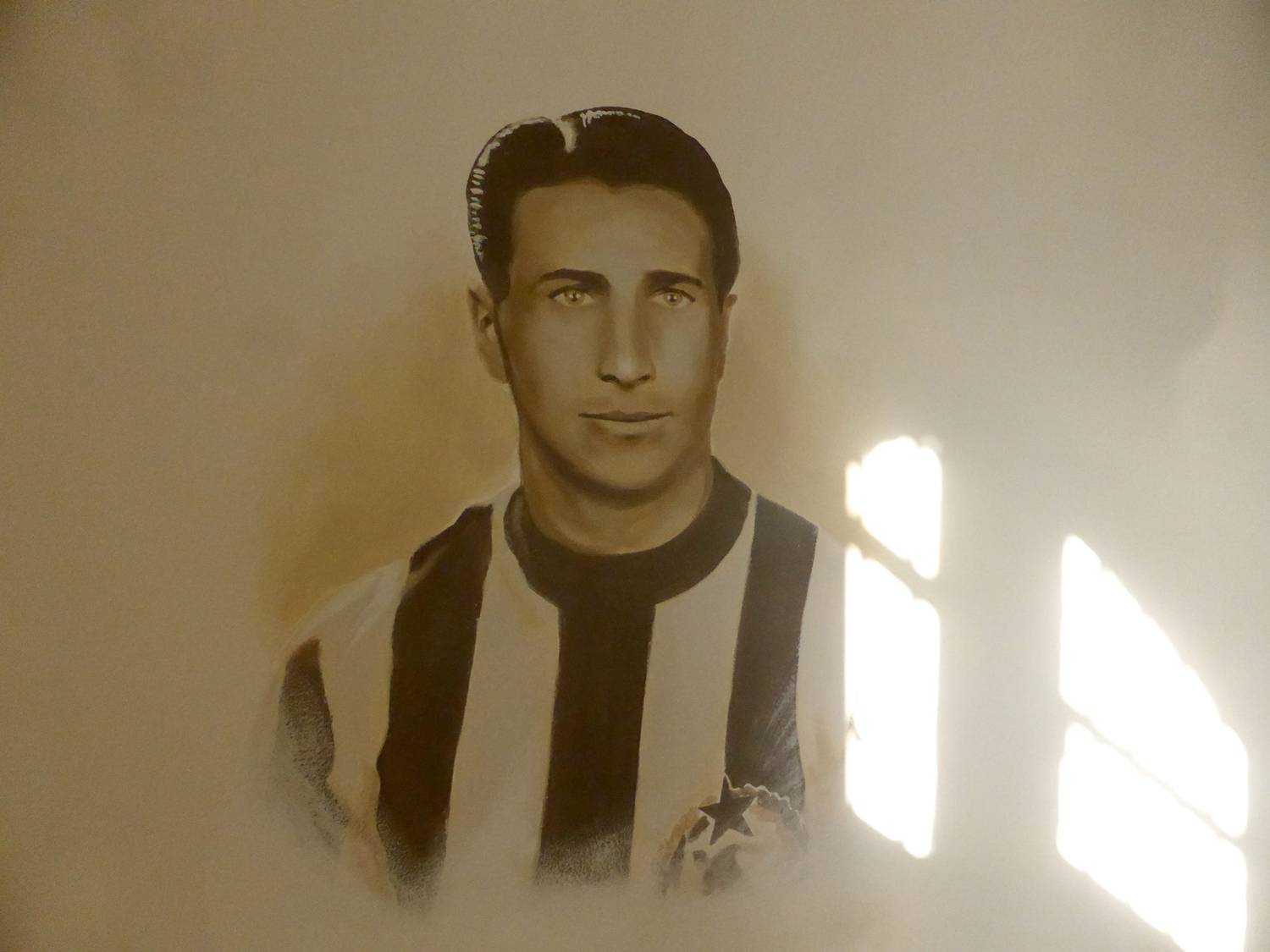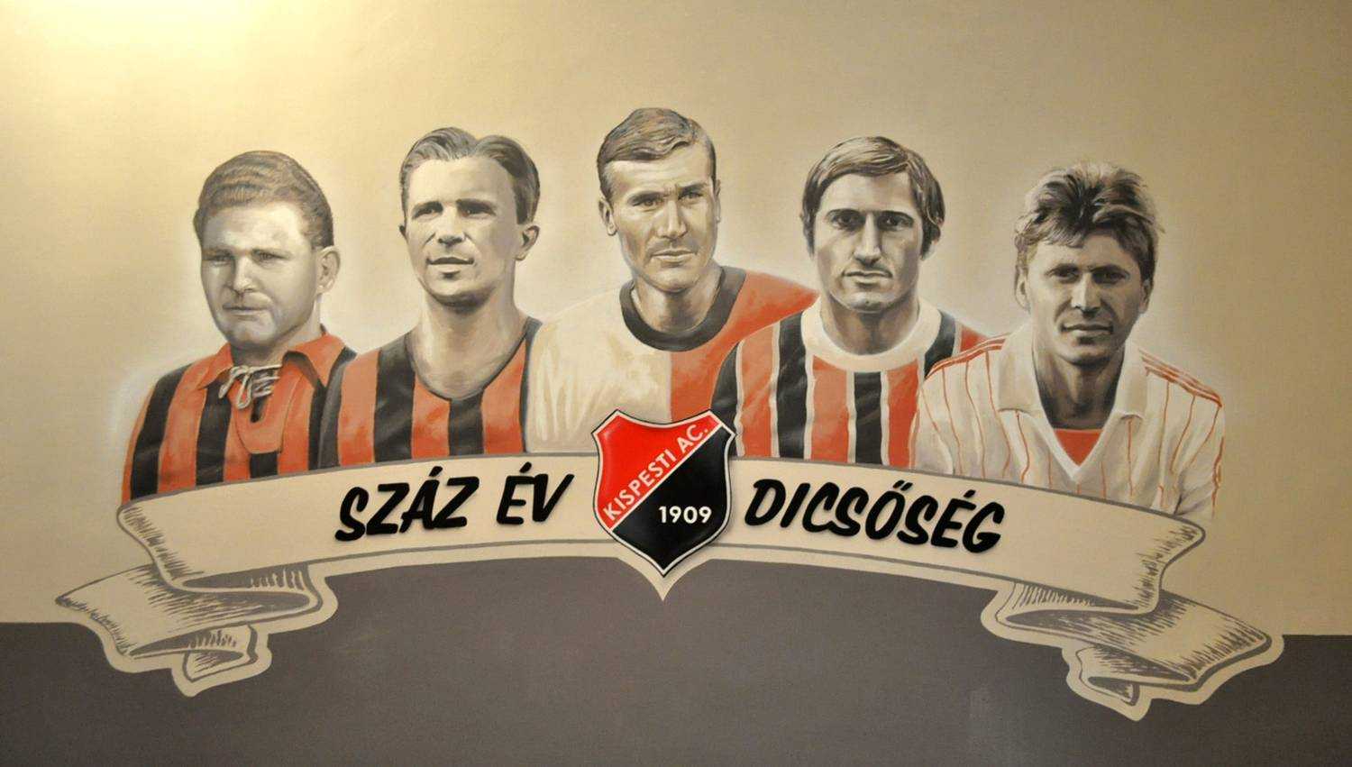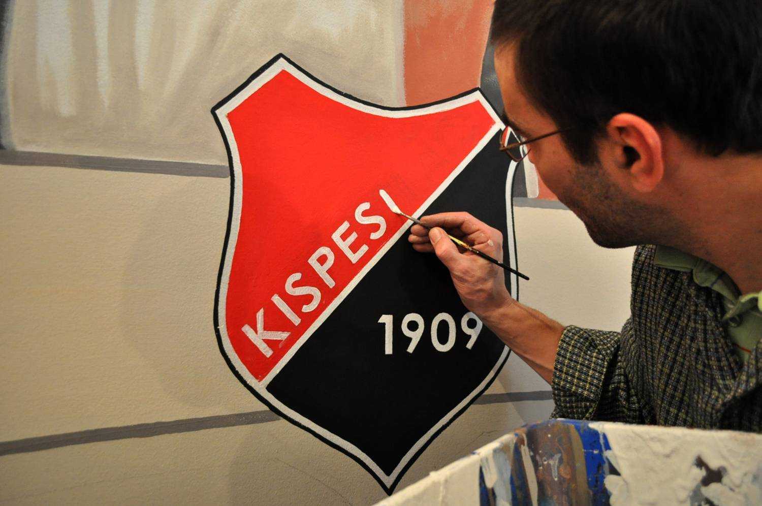Kispest 1909A Kispesti Futball Ház-ban készült portréképek a csapat legnagyobbjairól. Kézzel festett faldekoráció. Budapest, Kispest, Fő utca 38., 2015