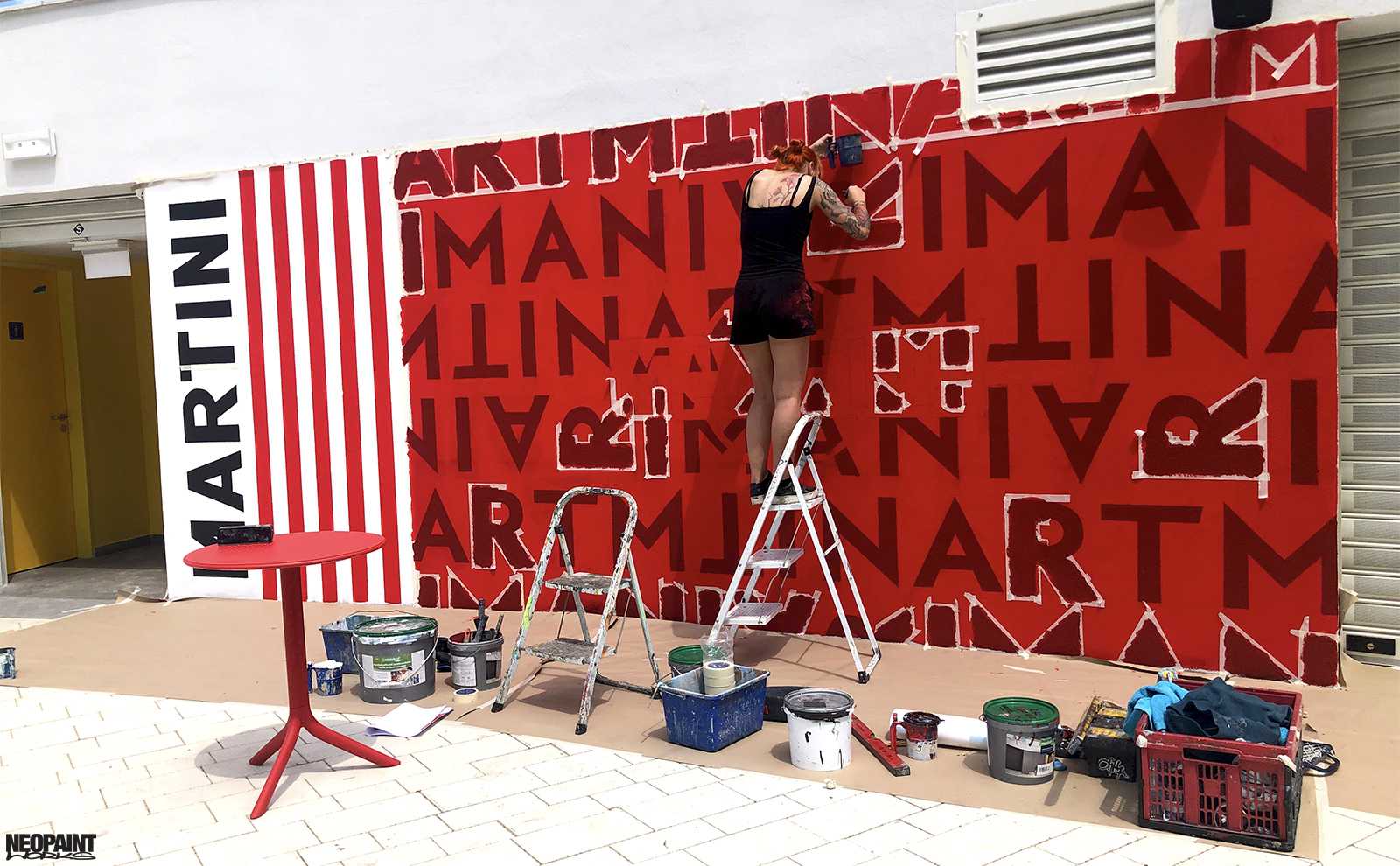 Reklámfestés a győri RQ Vízi Élménypark és Gyógyfürdő, kotktél bárja melletti falfelületén. A Martini támogatásval megvalósult festmény kivitelezése 1 napot vett igénybe.