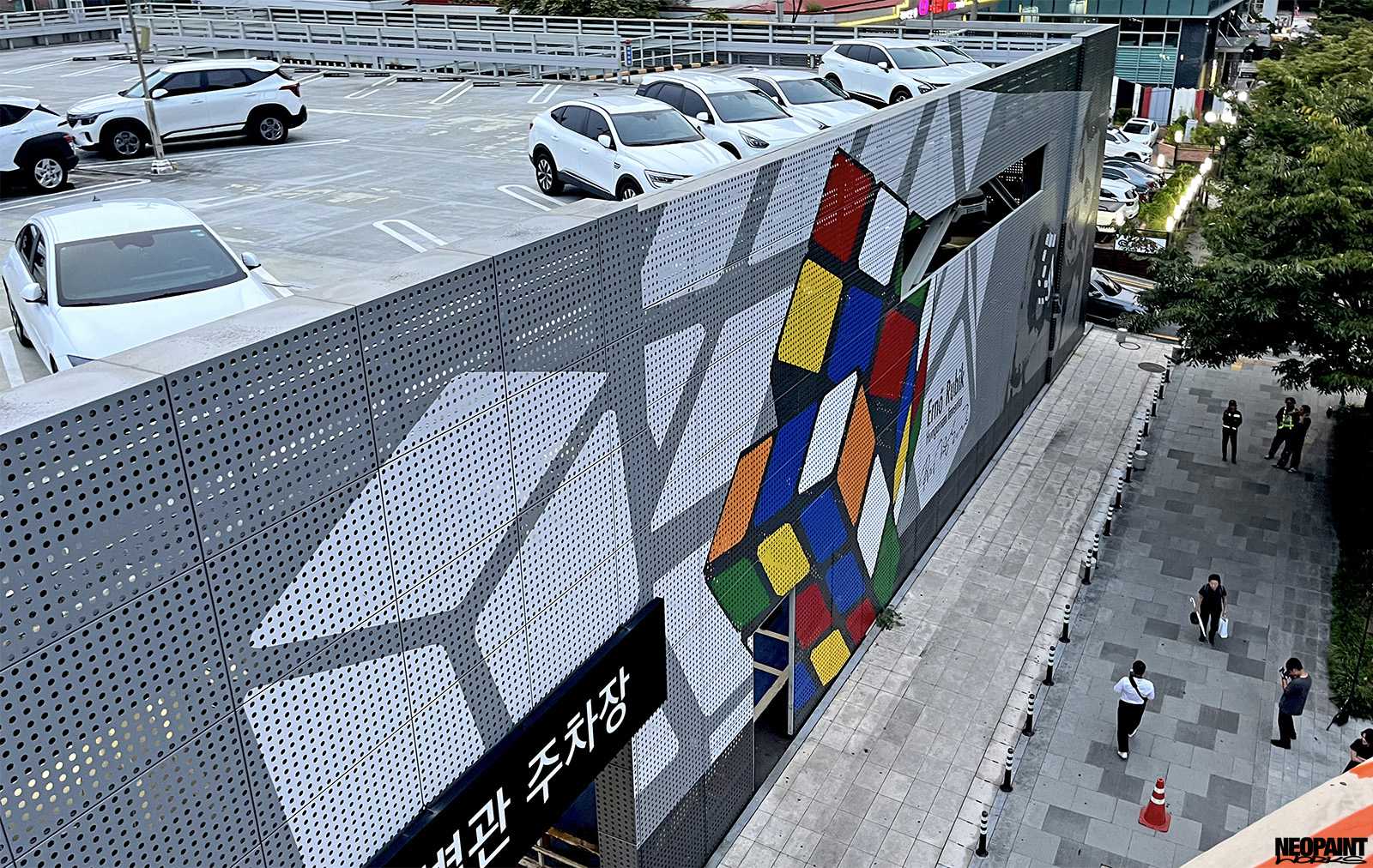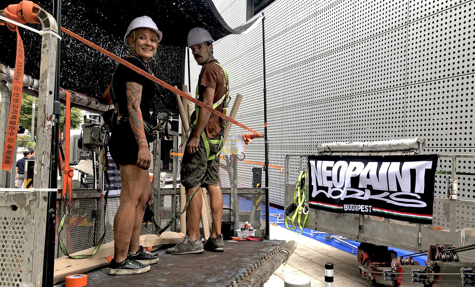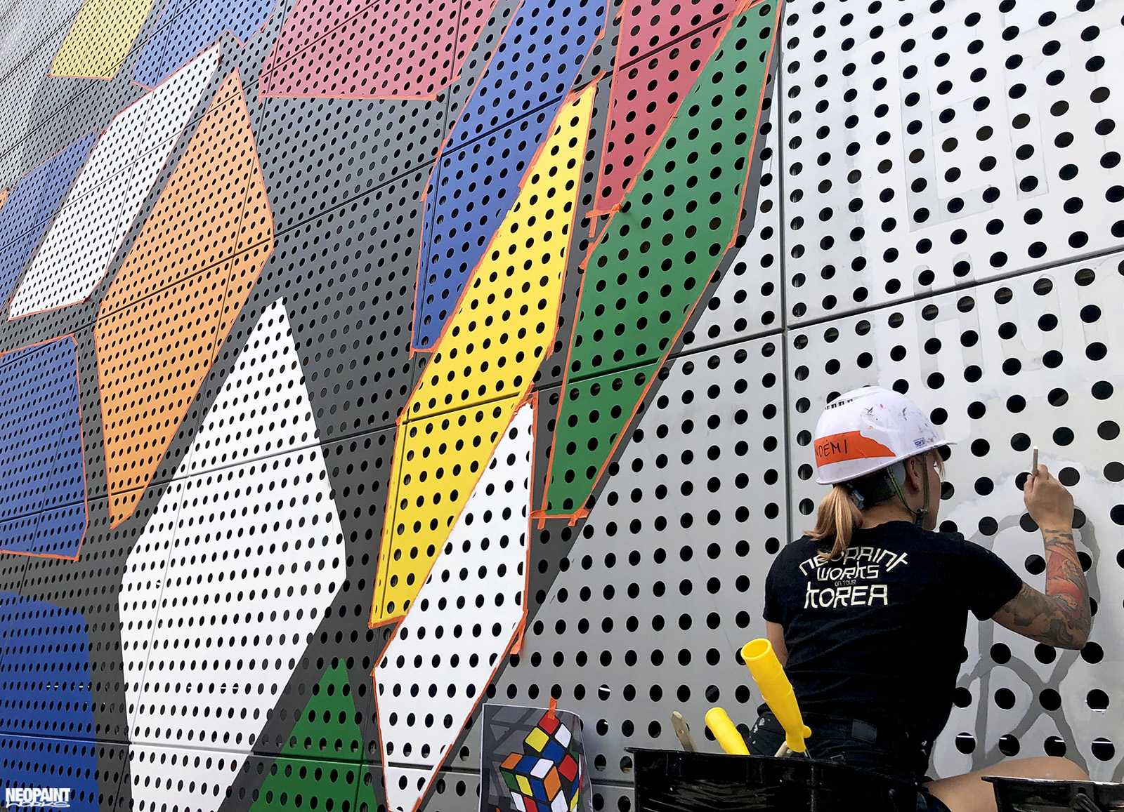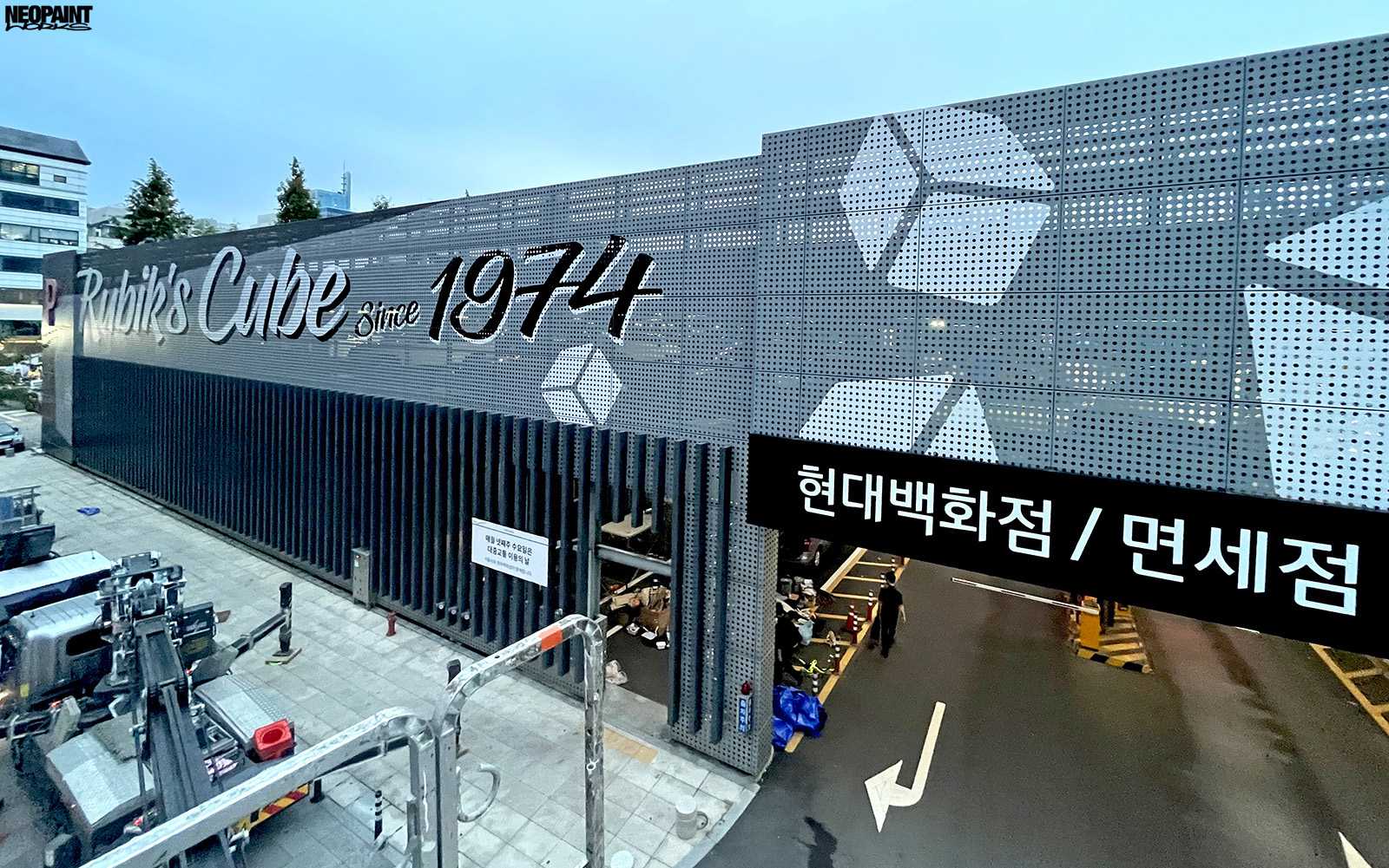 Dél-Korea fővárosába, Szöulba kaptunk meghívást a Magyar Kulturális Központtól (Liszt Intézet) valamint a Koreai Kulturális Minisztériumtól (Kofice) abból a célból, hogy készítsünk egy Rubik-kockát népszerűsítő falfestményt a város kereskedelmi városrészébe, a Gang Nam negyedbe. A 80 méter hosszú és 10 méter magas fém felületen a kocka és annak elnevezése mellett megjelenítettük Rubik Ernőt is, ahogy találmányát a kezében tartja. A grafikát mi terveztük az előzetesen leegyeztetett elképzelések és igények alapján. A teljes kivitelezés 6 napot vett igénybe, amelyben 3 koreai festő is segítségünkre volt. A monumentális utcai festmény a jövőre esedékes Rubik jubileumi évre készült, amikor is Rubik Ernő 80, a kocka pedig 50 évesek lesznek.