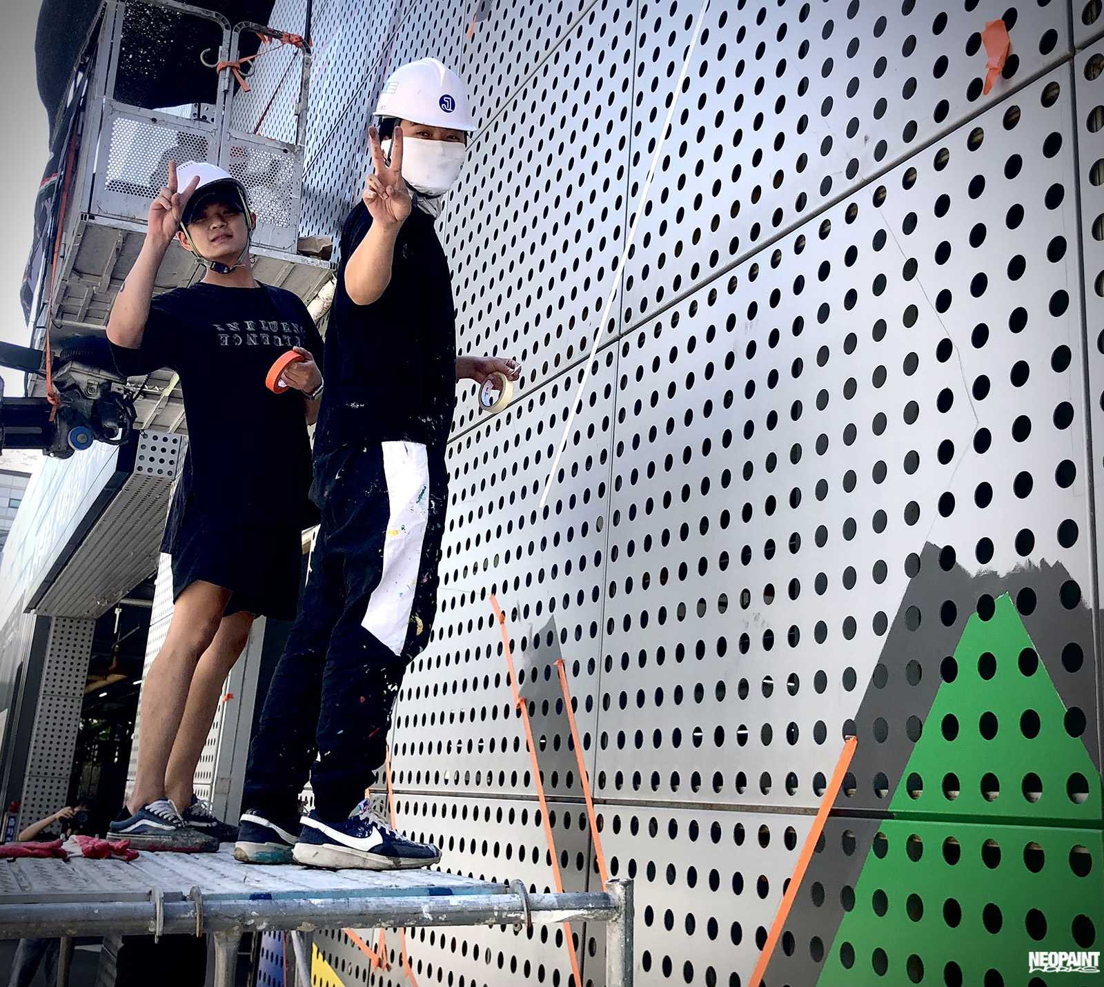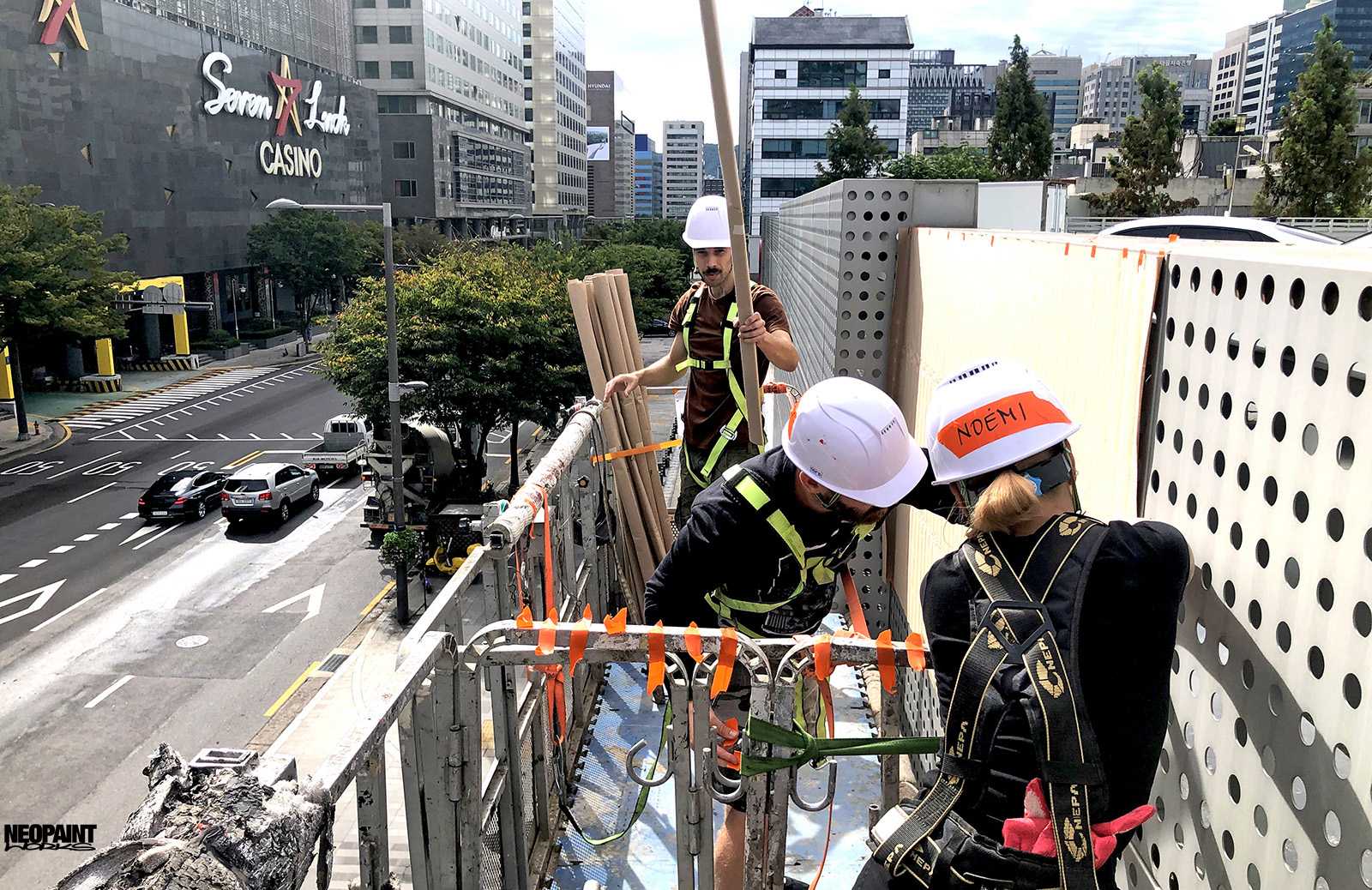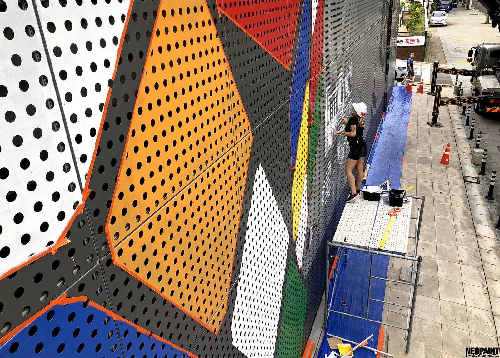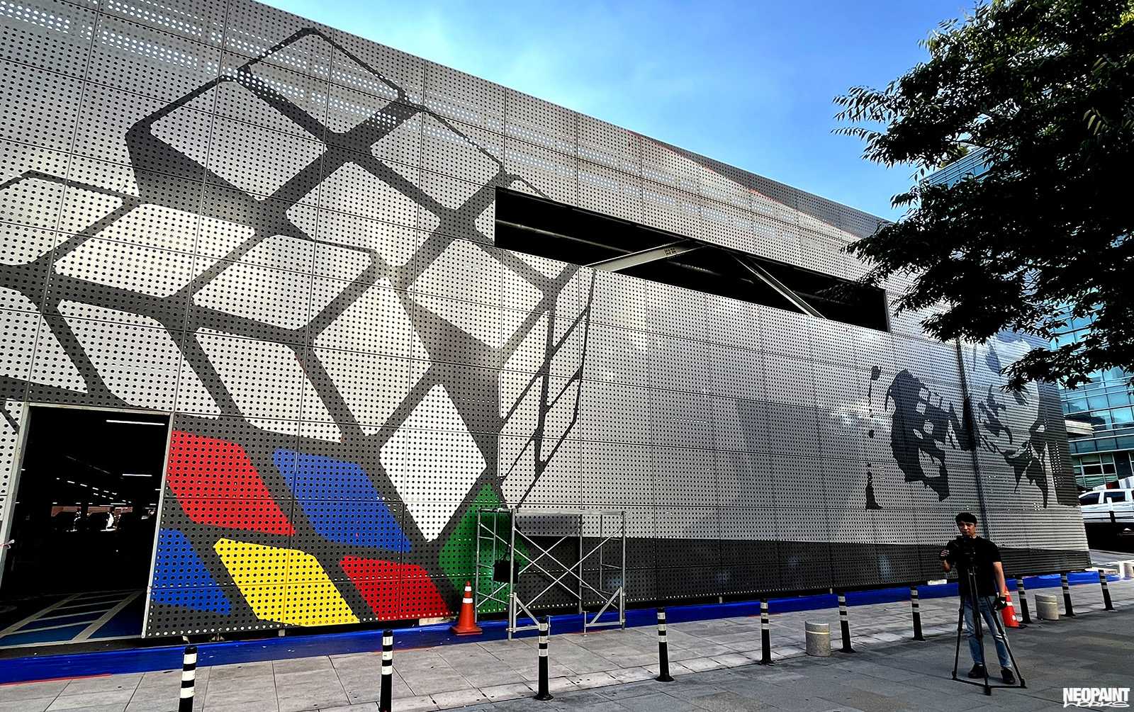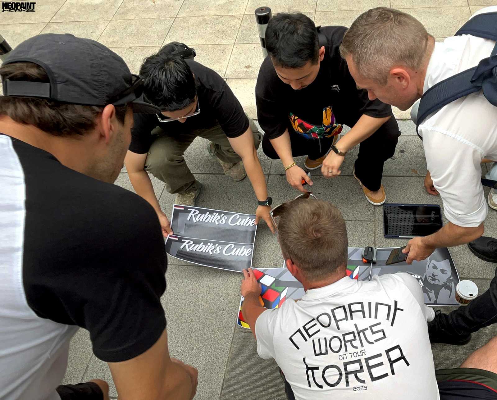 Dél-Korea fővárosába, Szöulba kaptunk meghívást a Magyar Kulturális Központtól (Liszt Intézet) valamint a Koreai Kulturális Minisztériumtól (Kofice) abból a célból, hogy készítsünk egy Rubik-kockát népszerűsítő falfestményt a város kereskedelmi városrészébe, a Gang Nam negyedbe. A 80 méter hosszú és 10 méter magas fém felületen a kocka és annak elnevezése mellett megjelenítettük Rubik Ernőt is, ahogy találmányát a kezében tartja. A grafikát mi terveztük az előzetesen leegyeztetett elképzelések és igények alapján. A teljes kivitelezés 6 napot vett igénybe, amelyben 3 koreai festő is segítségünkre volt. A monumentális utcai festmény a jövőre esedékes Rubik jubileumi évre készült, amikor is Rubik Ernő 80, a kocka pedig 50 évesek lesznek.