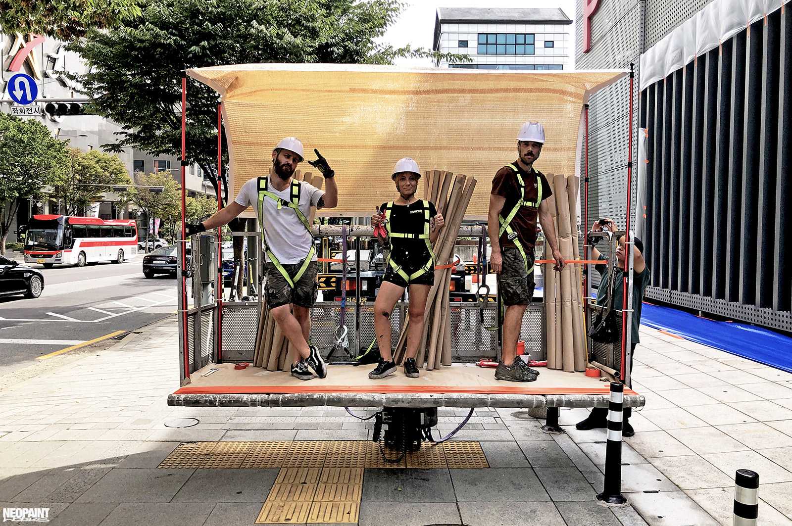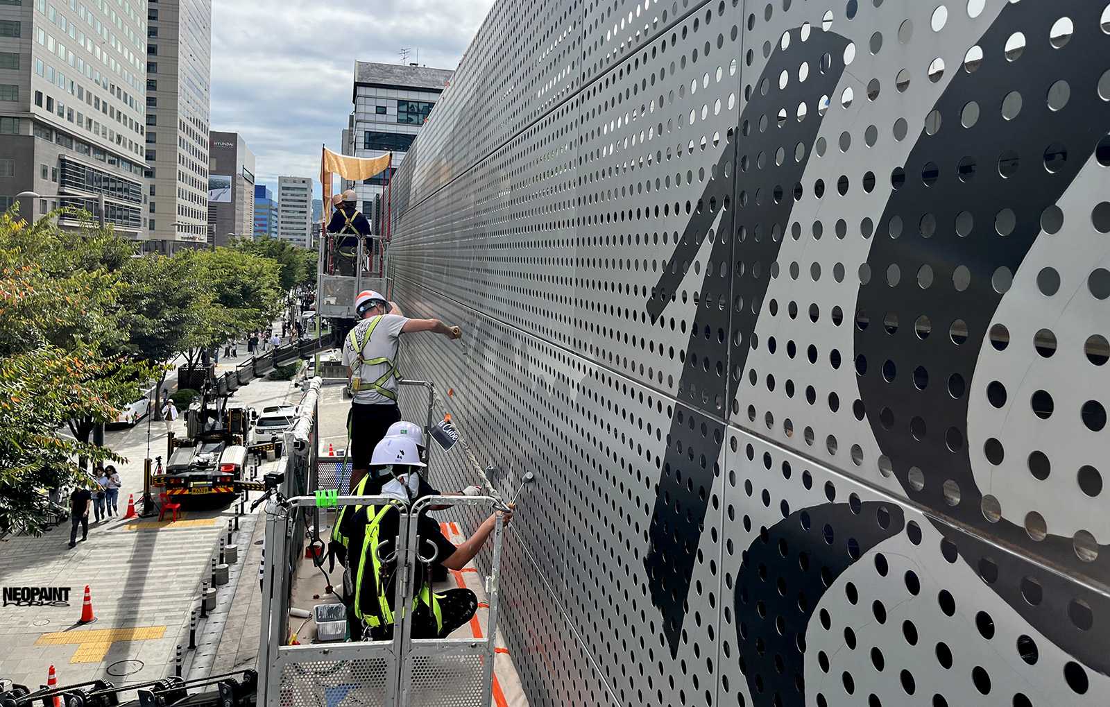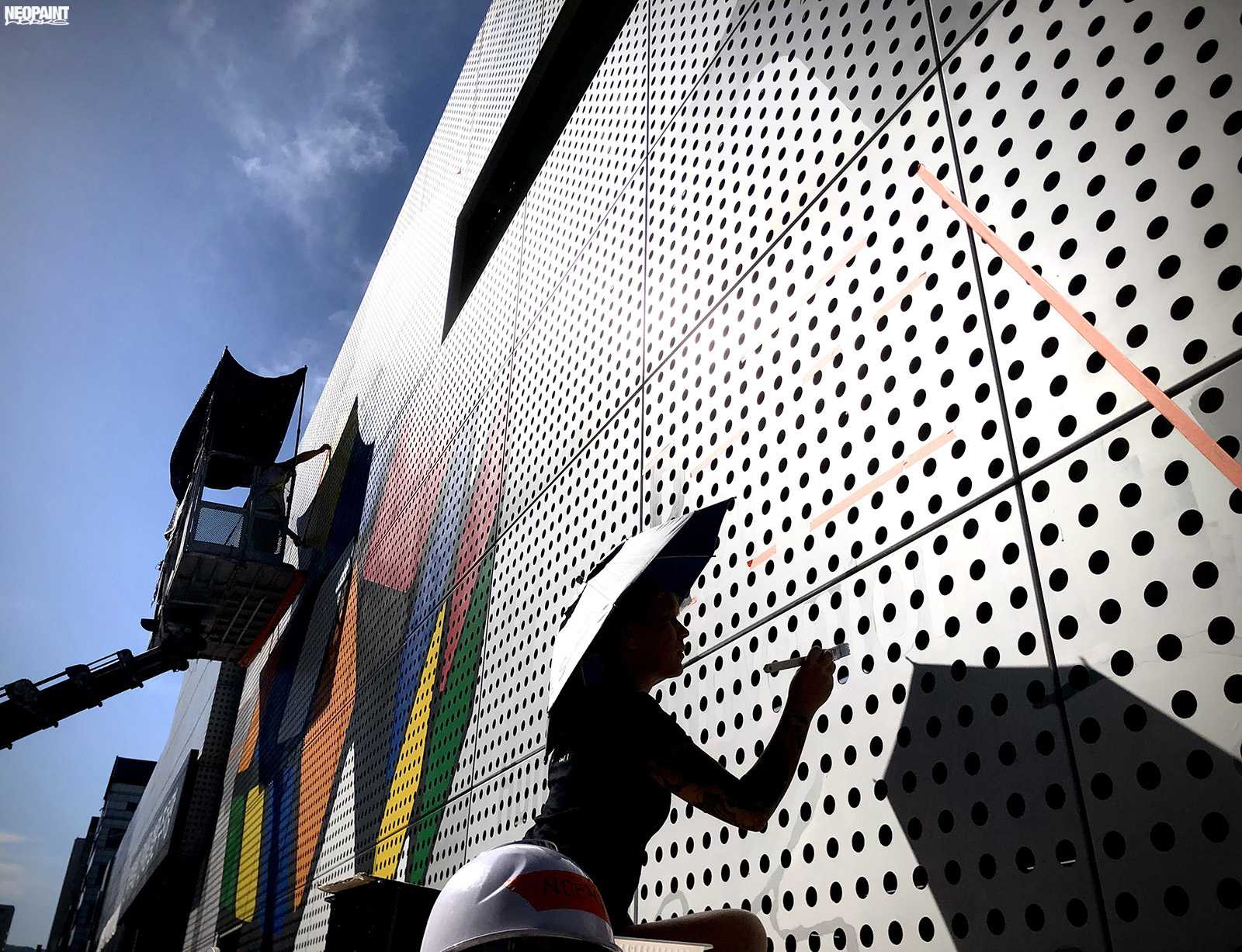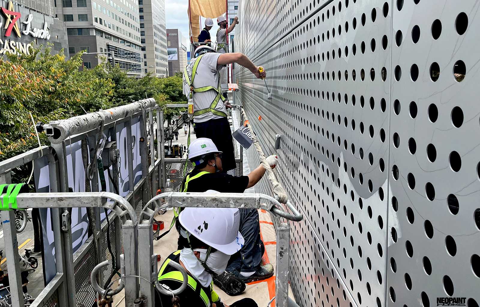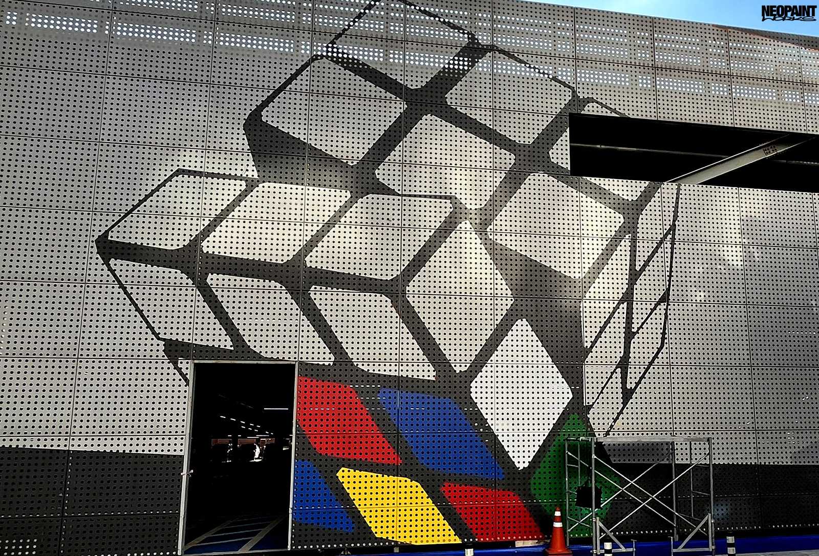Dél-Korea fővárosába, Szöulba kaptunk meghívást a Magyar Kulturális Központtól (Liszt Intézet) valamint a Koreai Kulturális Minisztériumtól (Kofice) abból a célból, hogy készítsünk egy Rubik-kockát népszerűsítő falfestményt a város kereskedelmi városrészébe, a Gang Nam negyedbe. A 80 méter hosszú és 10 méter magas fém felületen a kocka és annak elnevezése mellett megjelenítettük Rubik Ernőt is, ahogy találmányát a kezében tartja. A grafikát mi terveztük az előzetesen leegyeztetett elképzelések és igények alapján. A teljes kivitelezés 6 napot vett igénybe, amelyben 3 koreai festő is segítségünkre volt. A monumentális utcai festmény a jövőre esedékes Rubik jubileumi évre készült, amikor is Rubik Ernő 80, a kocka pedig 50 évesek lesznek.