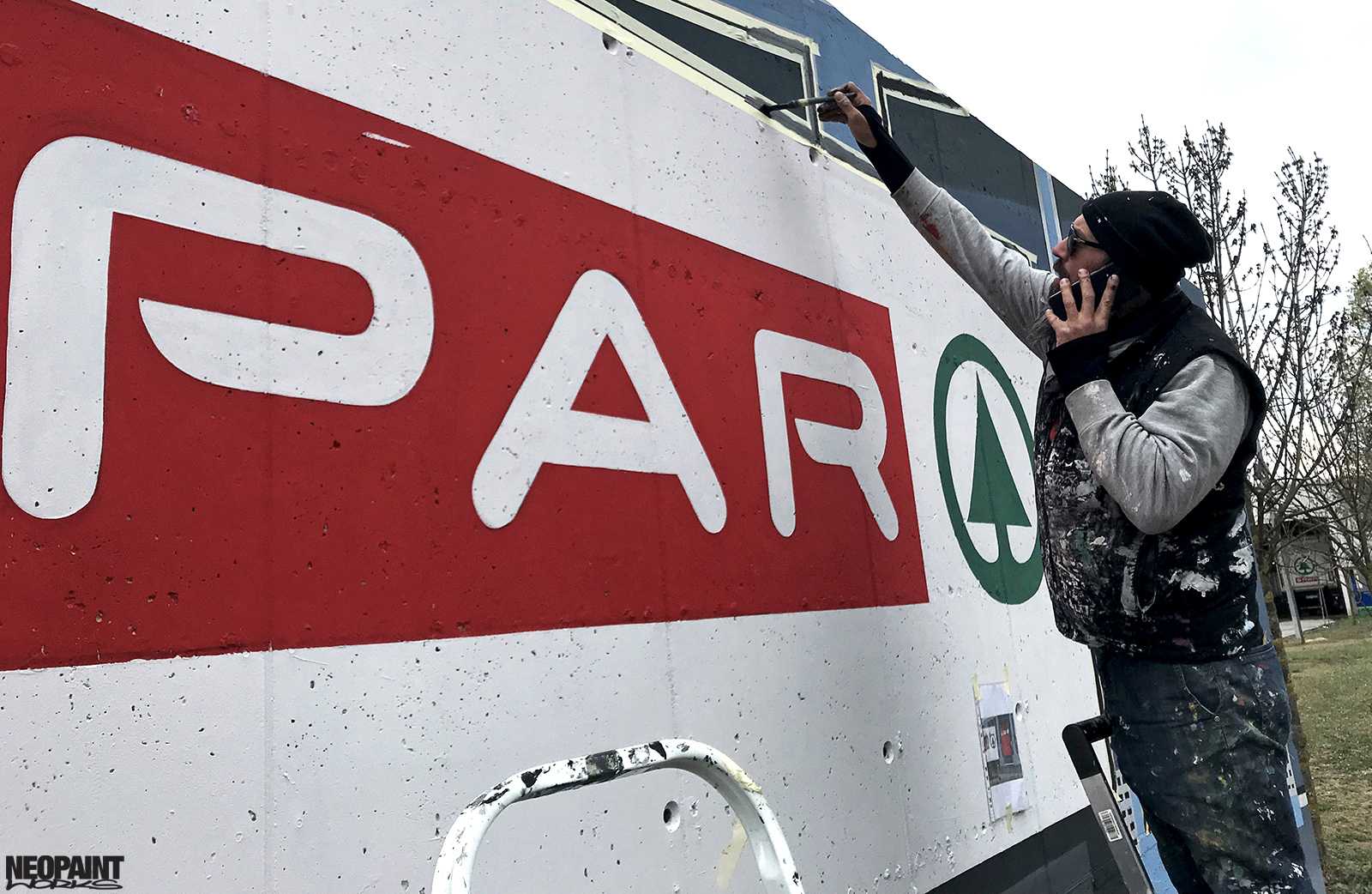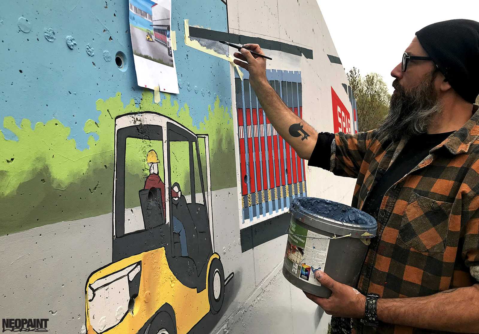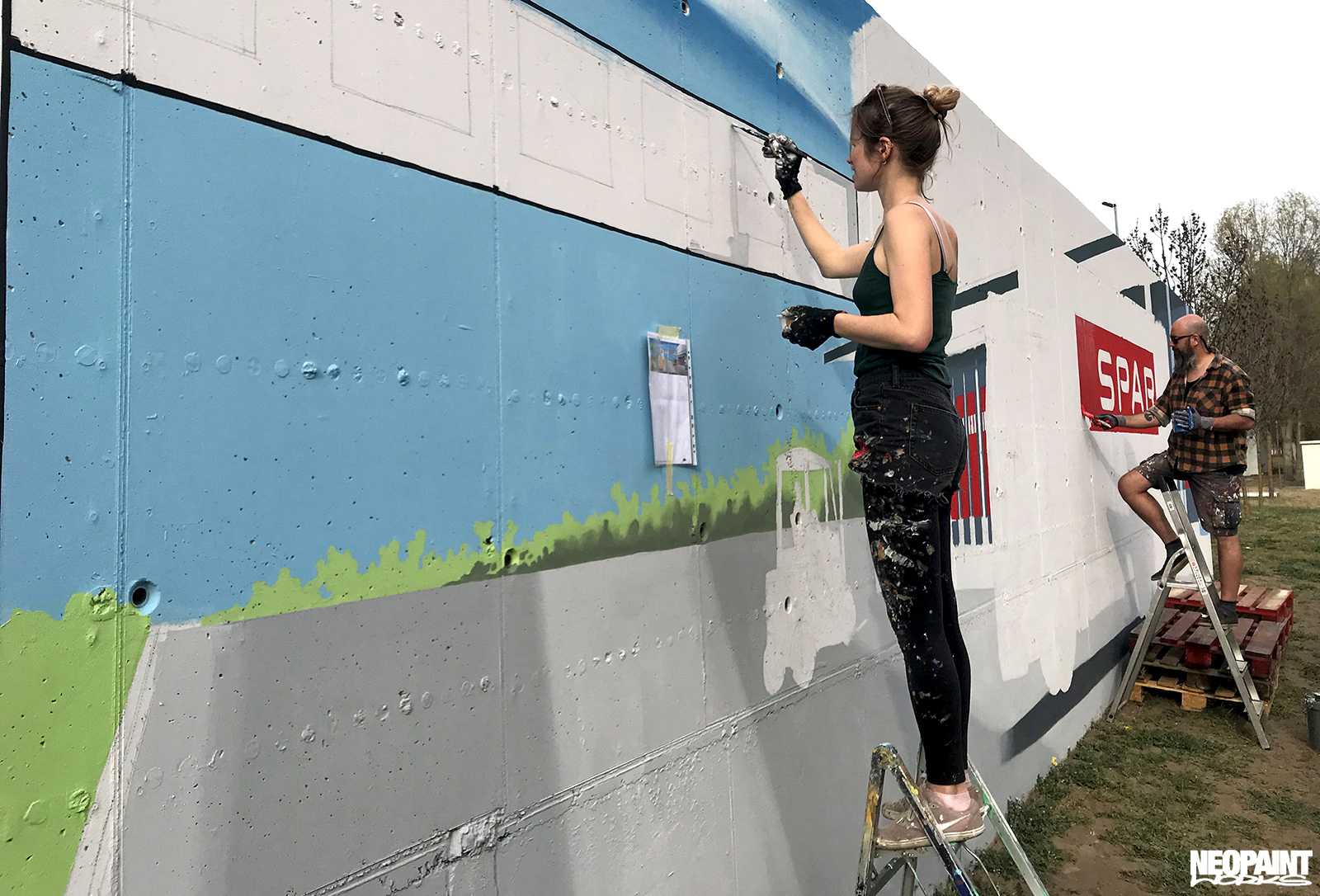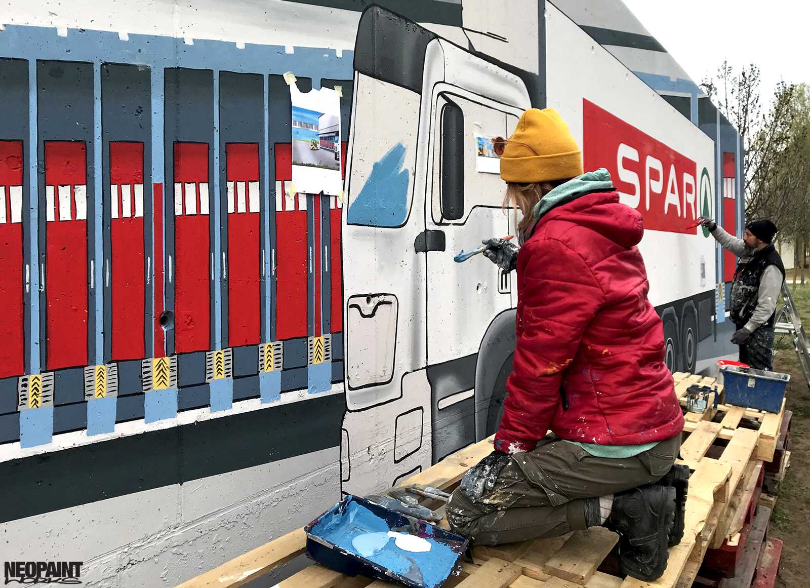 A Spar egyik logisztikai központjában készült falfestmény dekoráció. A 18 méter hosszú kép 4 nap alatt készült el amelyhez a grafikai tervet a Spice Communication Kft. biztosította.