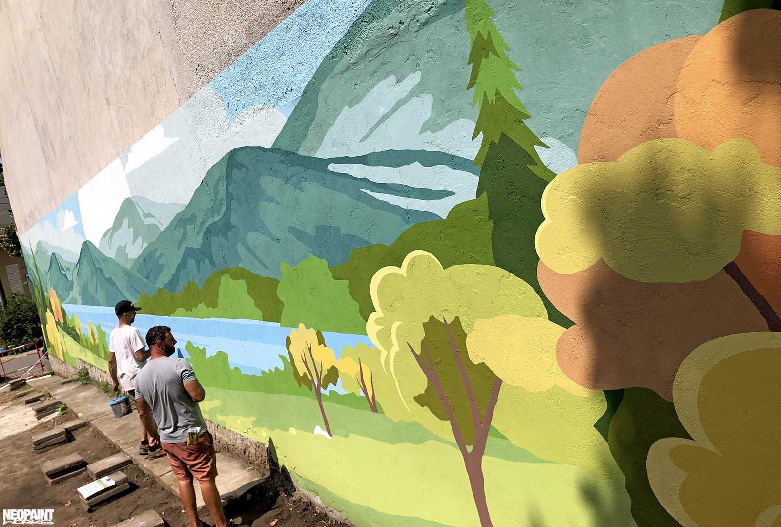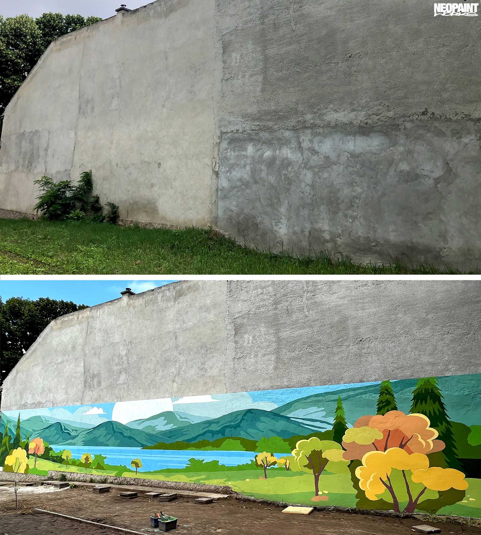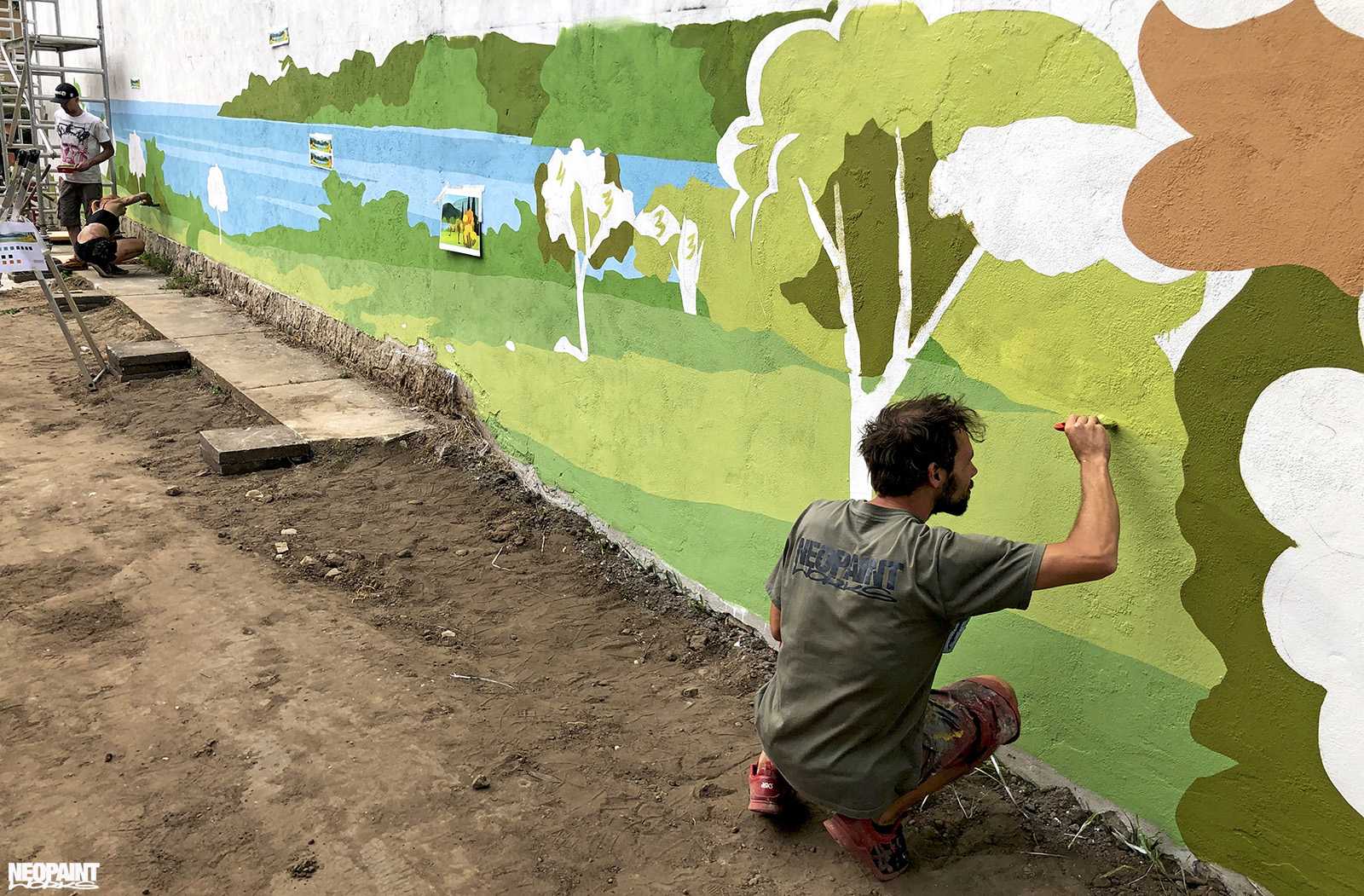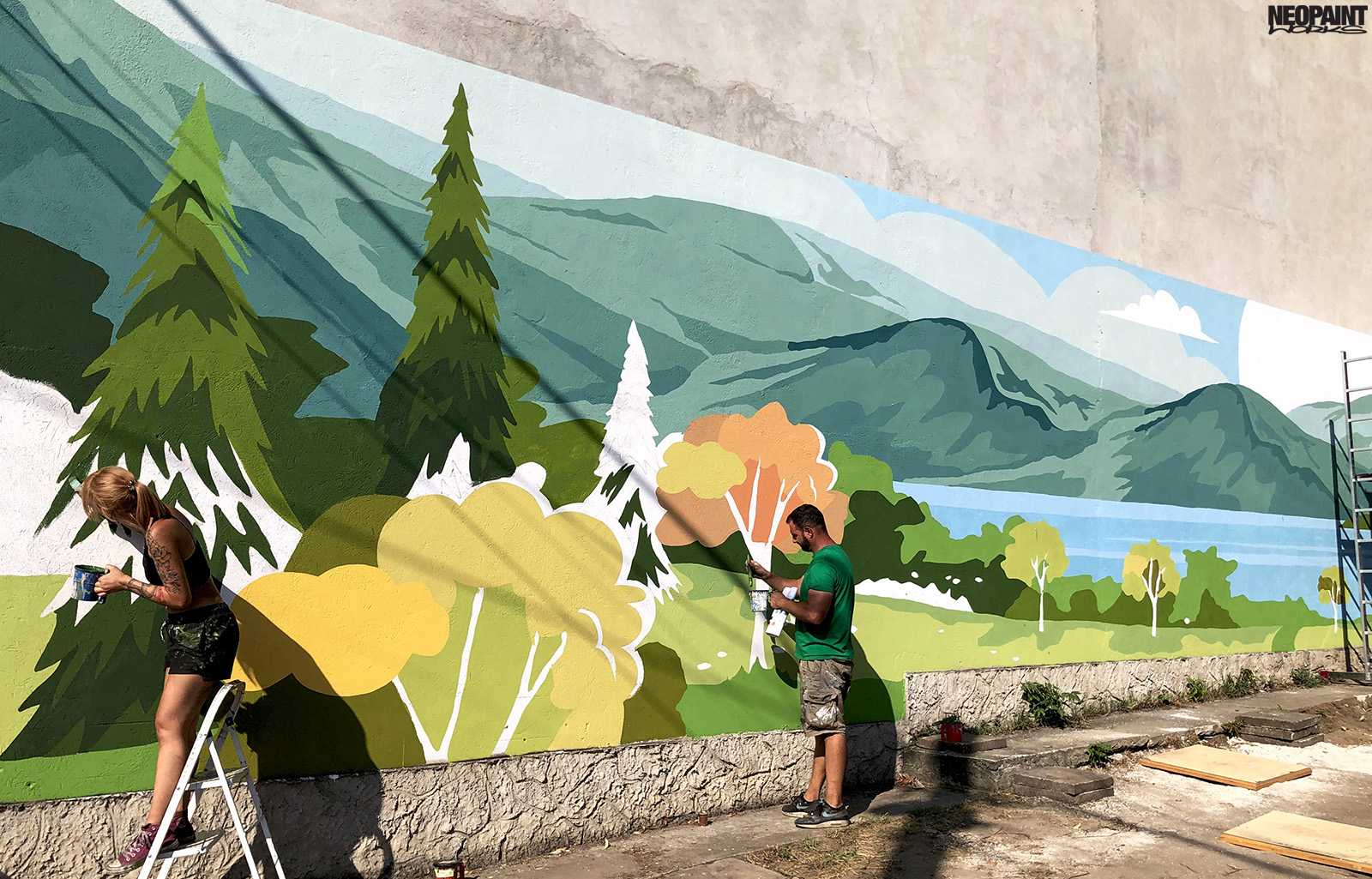 Egy XV. kerületi foghíjtelekből egy pihenő parkot és játszóteret alakított ki az önkoránymányzat. Ennek a felújításnak egy fontos része a szomszédos, 40 méter hosszú fafelületre készült falfestmény, amely így már egy kellemes hátteret ad az átalakult területnek.