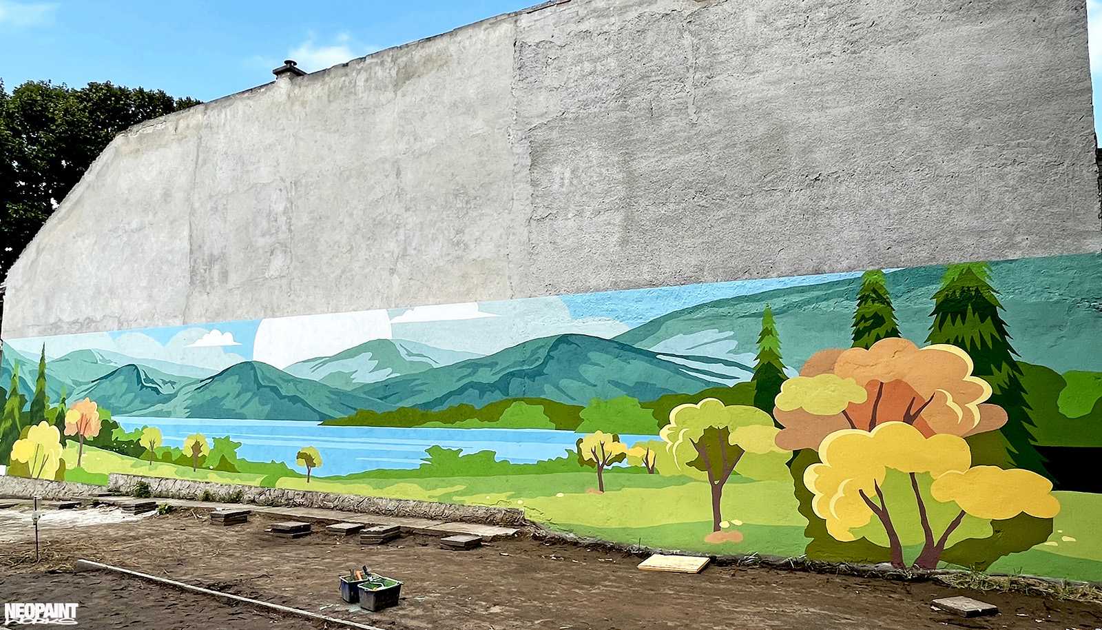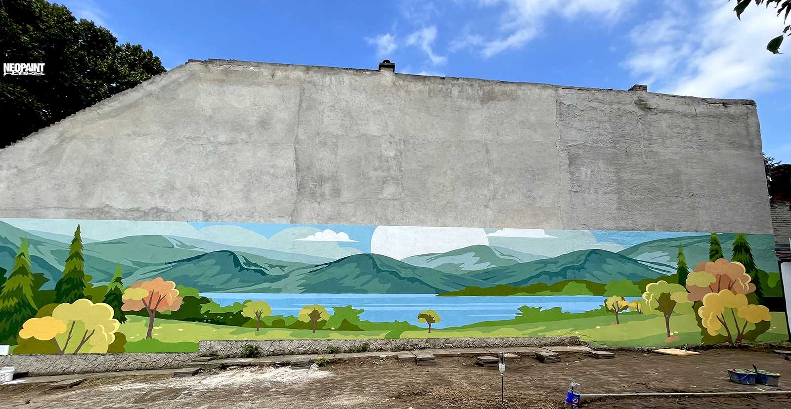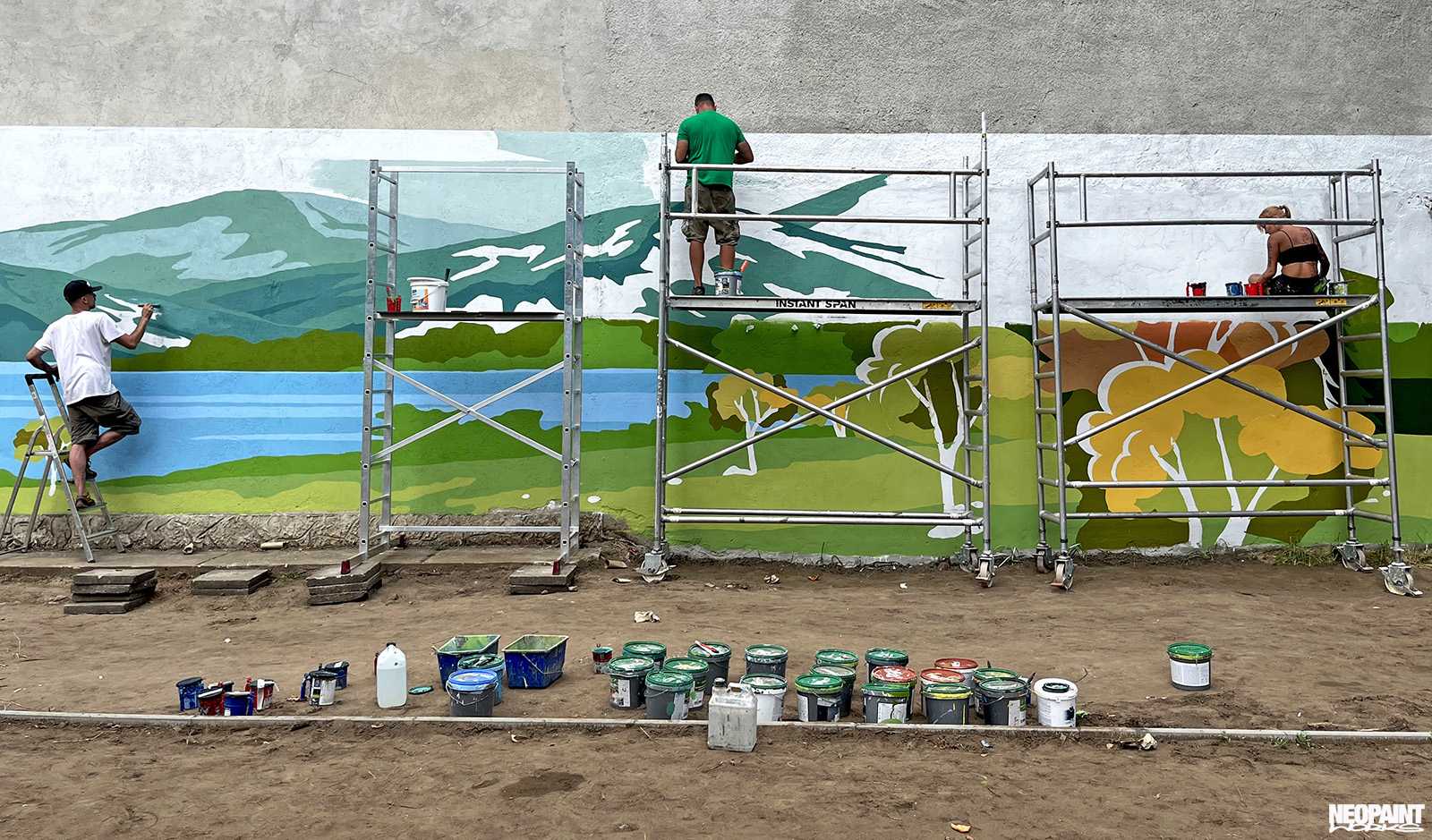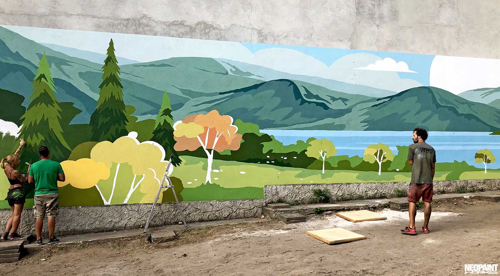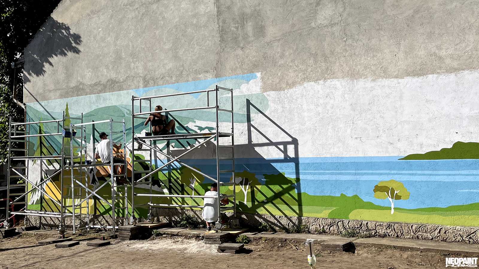 Egy XV. kerületi foghíjtelekből egy pihenő parkot és játszóteret alakított ki az önkoránymányzat. Ennek a felújításnak egy fontos része a szomszédos, 40 méter hosszú fafelületre készült falfestmény, amely így már egy kellemes hátteret ad az átalakult területnek.