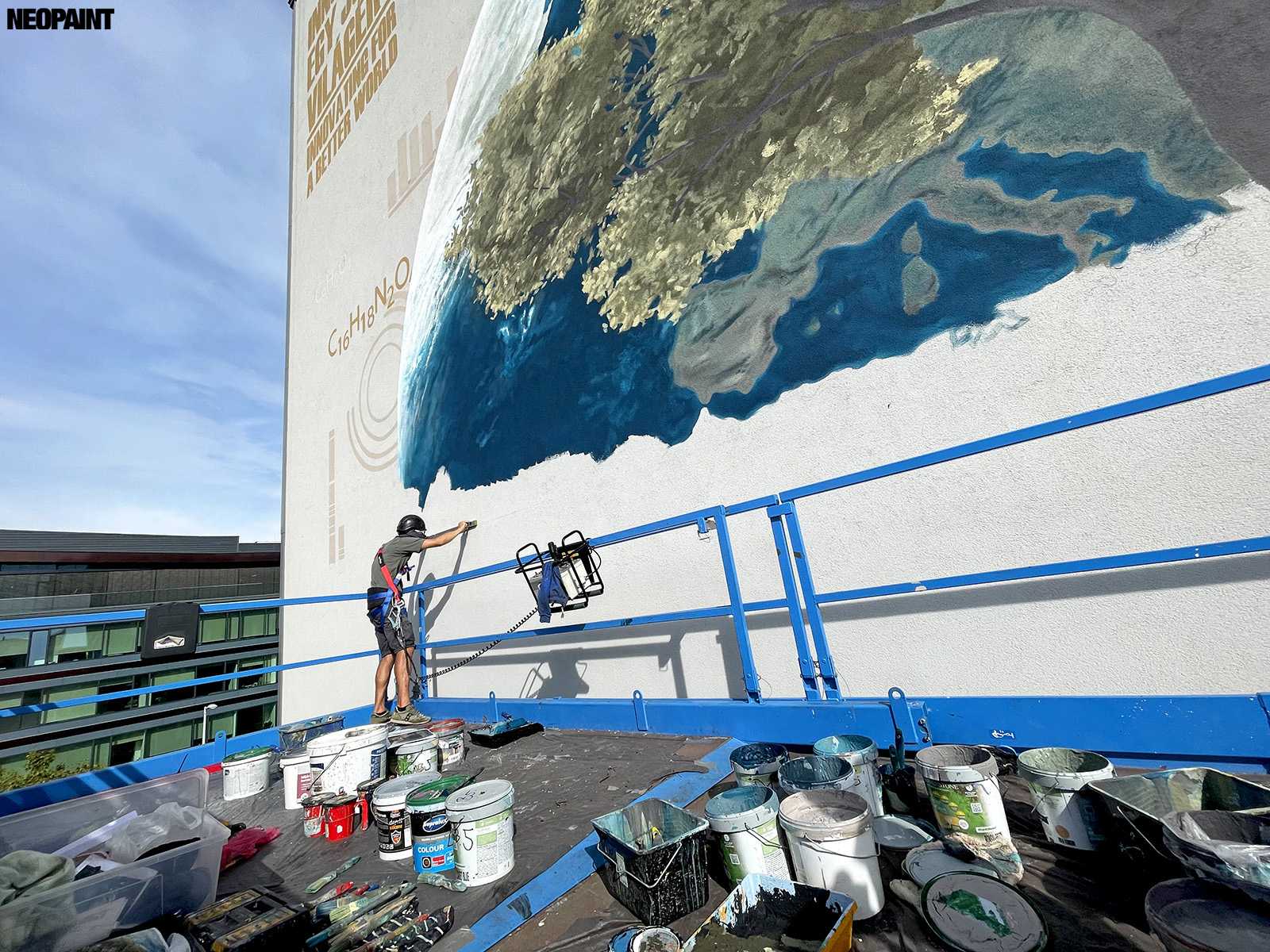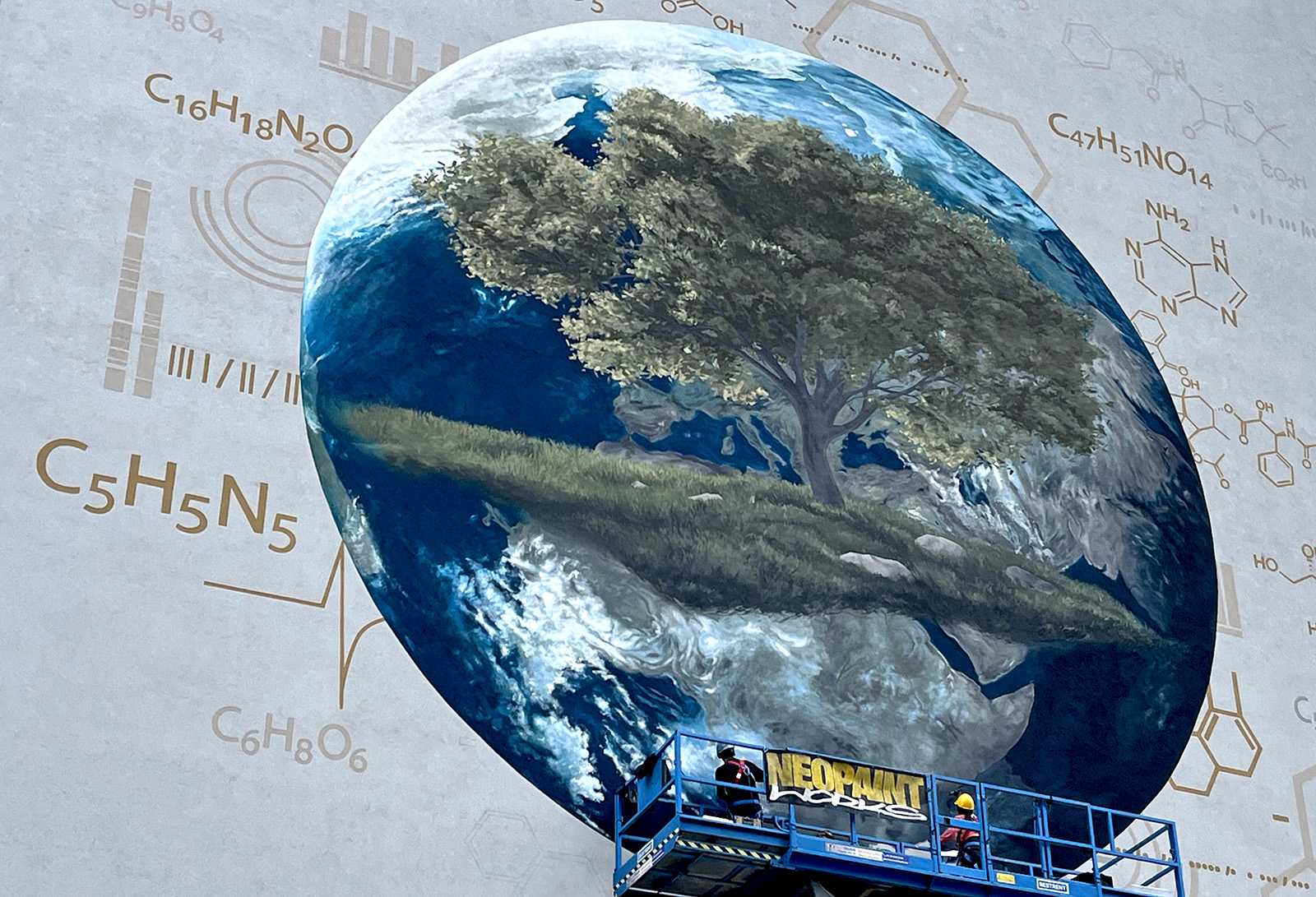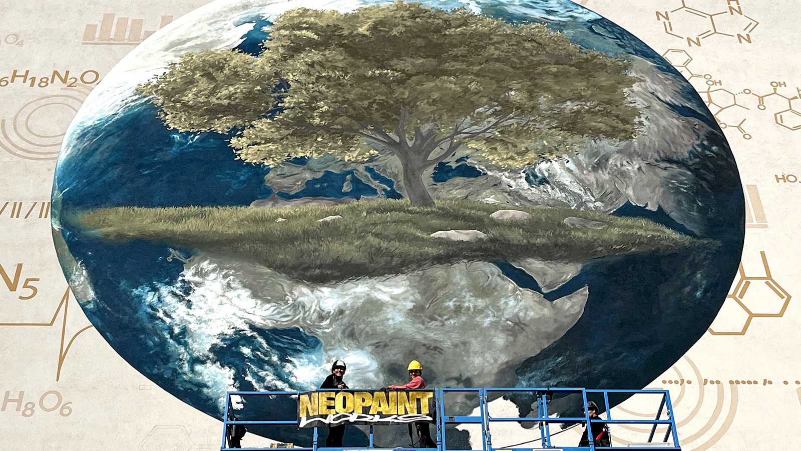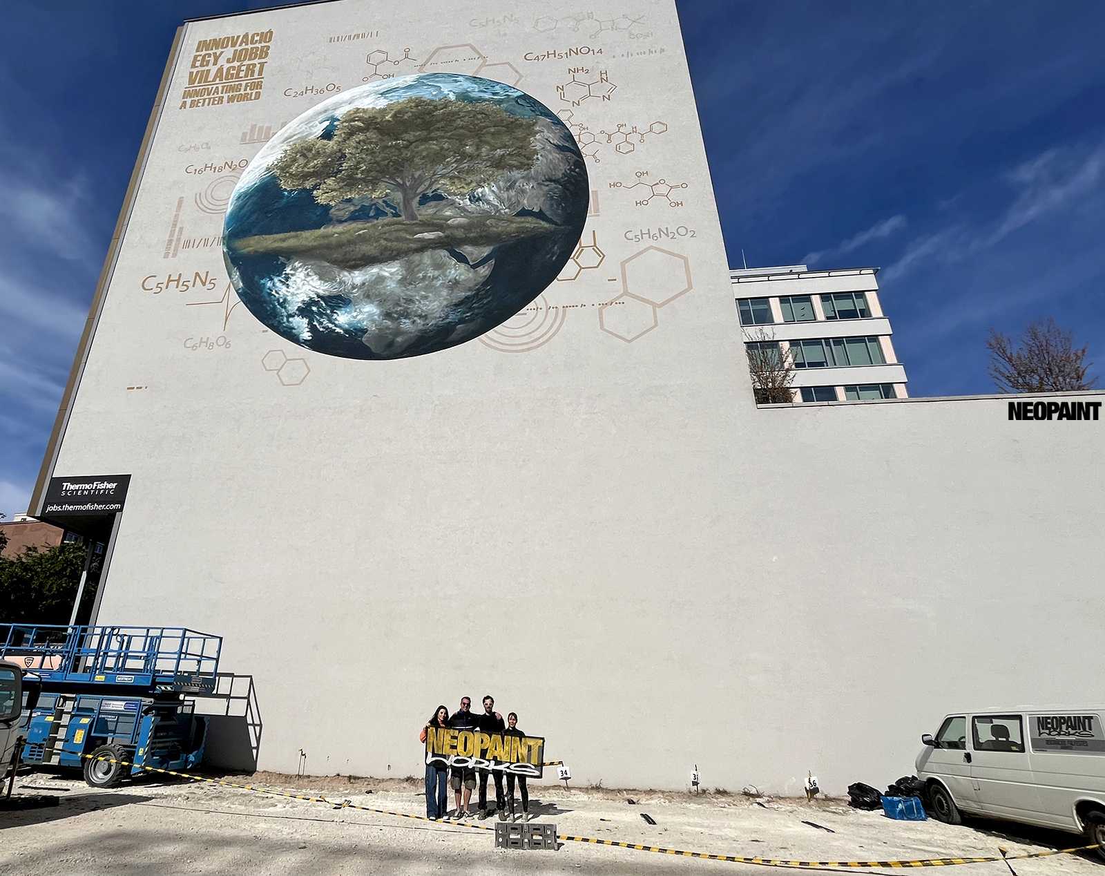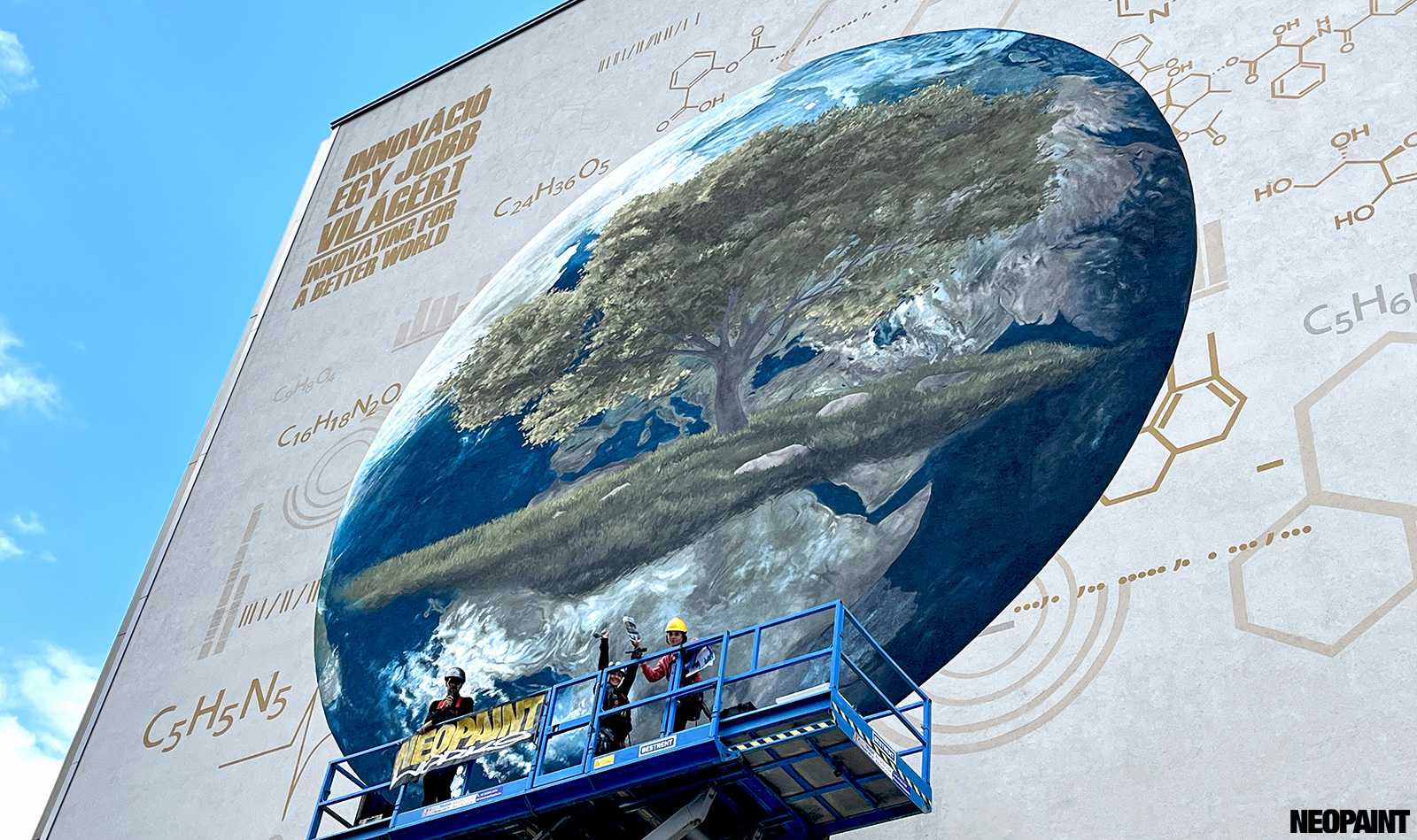 A megrendelő cégnek határozott elképzlései voltak arról, hogy mit és mlyen forméban szeretnének megjeleníteni a falon, kiemelten a földgolyót a természettel és a tudományokkal szoros együttműködésében.