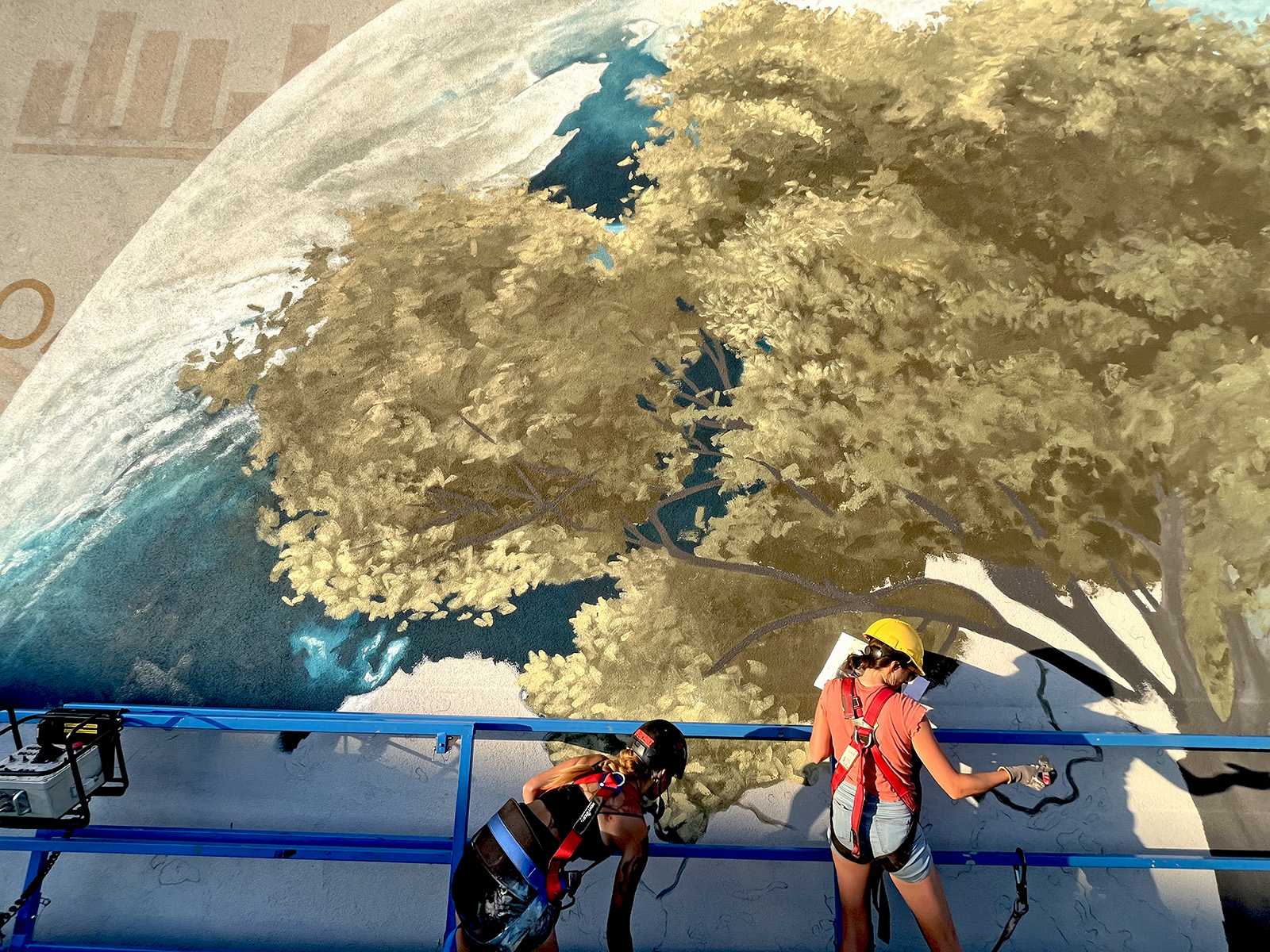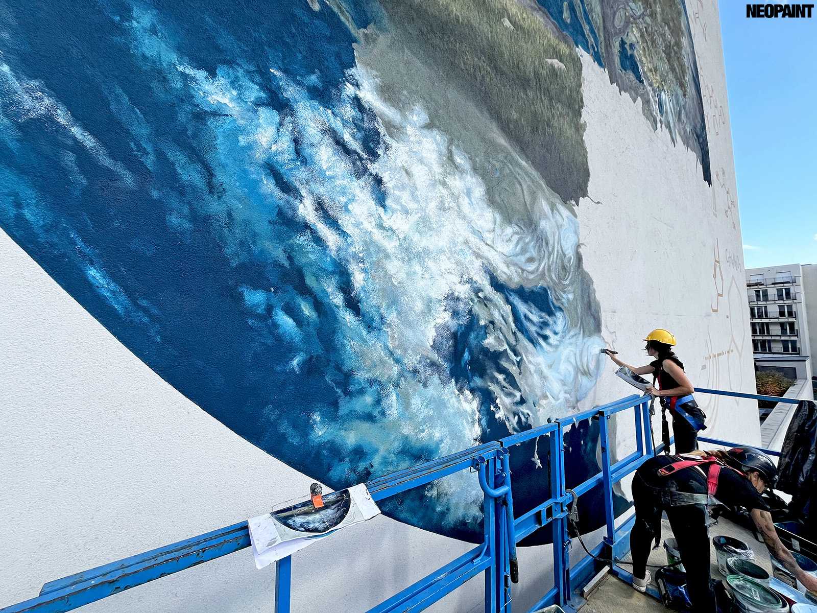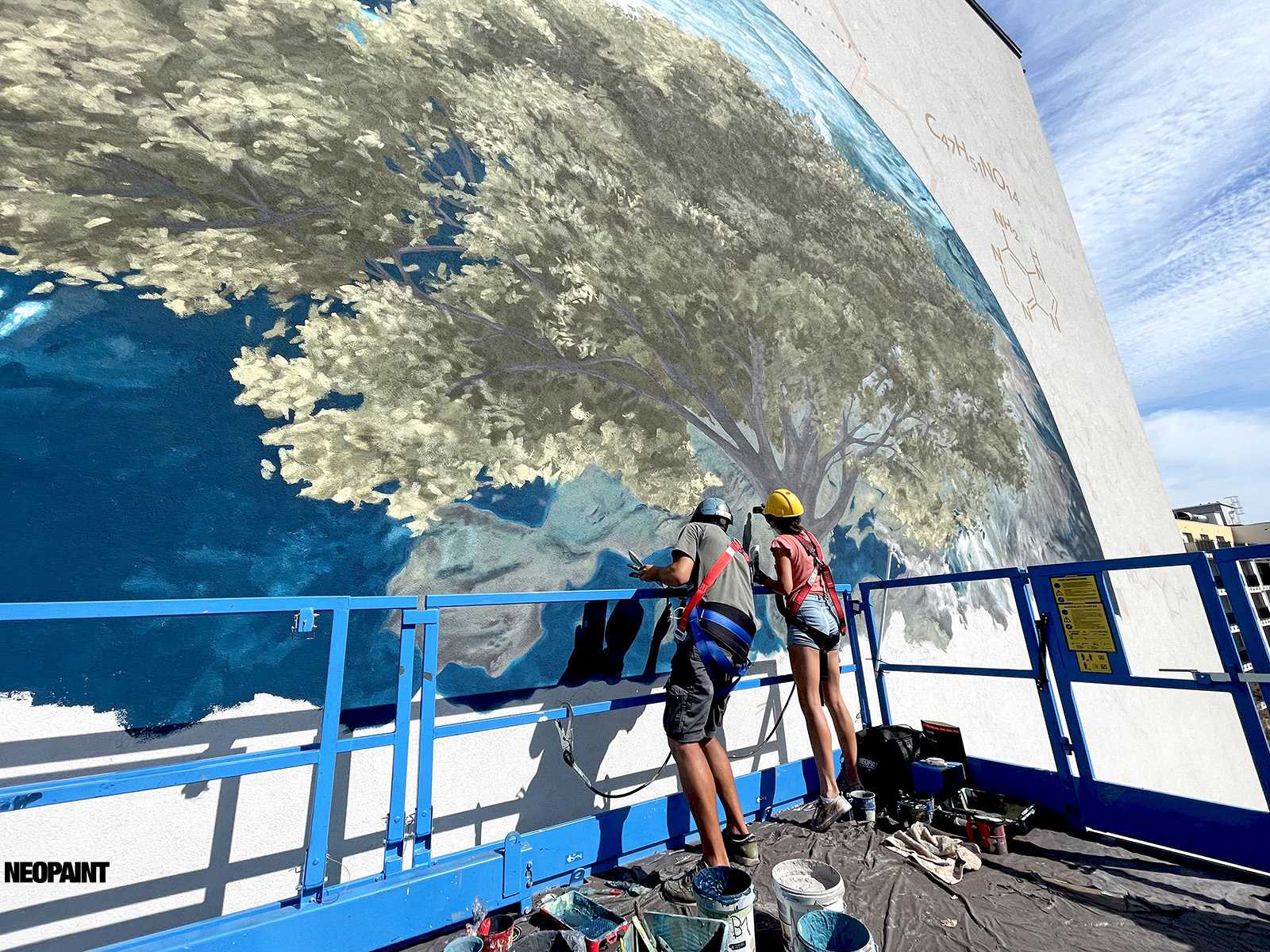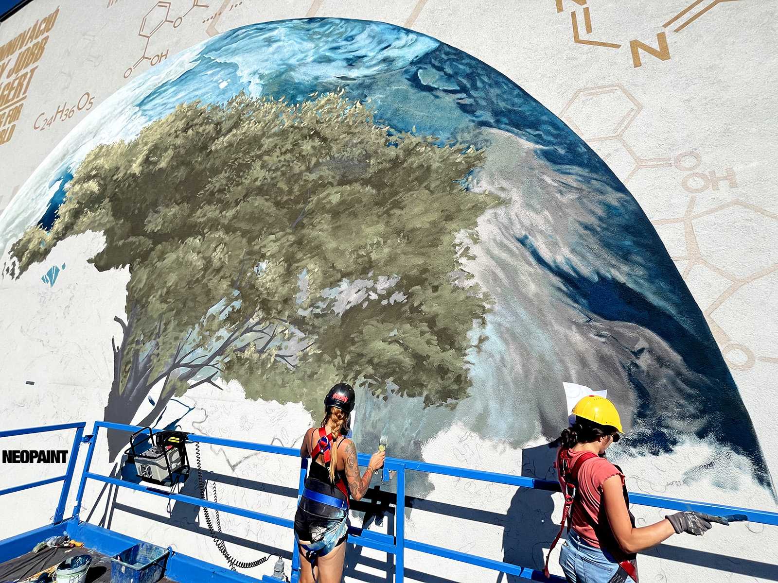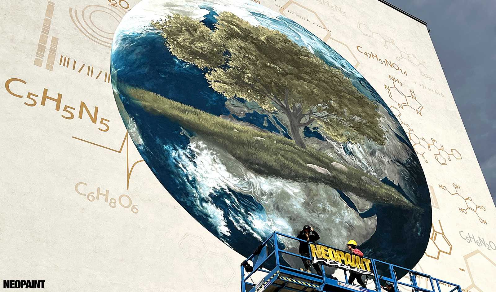 A megrendelő cégnek határozott elképzlései voltak arról, hogy mit és mlyen forméban szeretnének megjeleníteni a falon, kiemelten a földgolyót a természettel és a tudományokkal szoros együttműködésében.