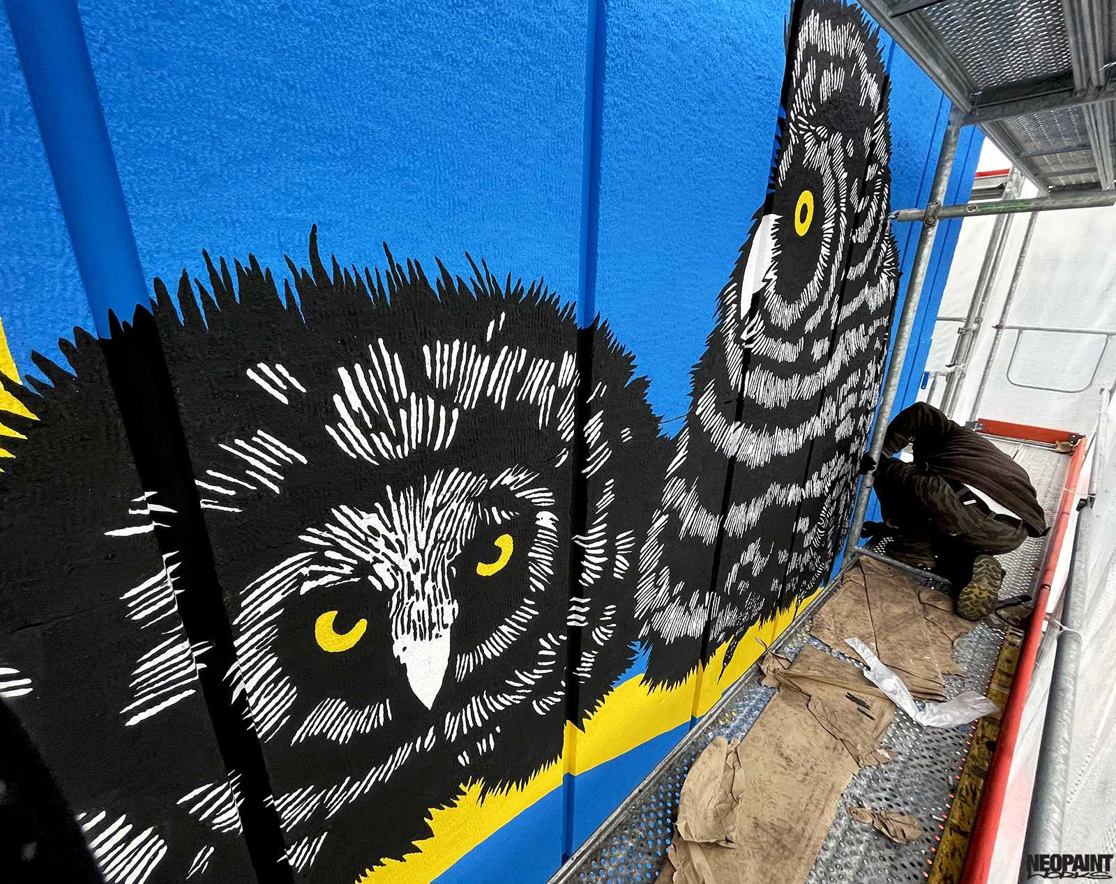 Ennél a projektnél az volt a feladatunk, hogy a lehető legpontosabban valósítsuk meg Perecz Annabella grafikusművész elképzelését, amelyen hat fülesbagoly látható.